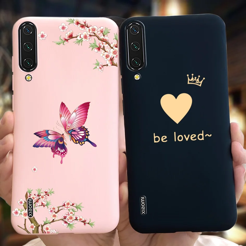 Comprar Funda de silicona suave a prueba de golpes para Xiaomi Mi A3, carcasa delgada con corazón de amor y mariposa para Xiaomi Mi A3