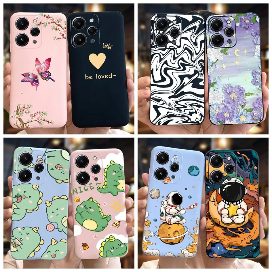 Comprar Funda de silicona suave a prueba de golpes para Xiaomi Redmi 12 4G, carcasa de teléfono a prueba de golpes con diseño de dinosaurio y astronauta