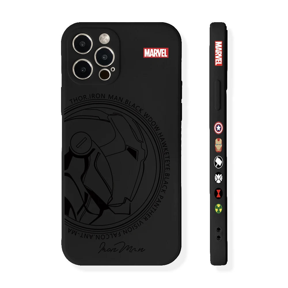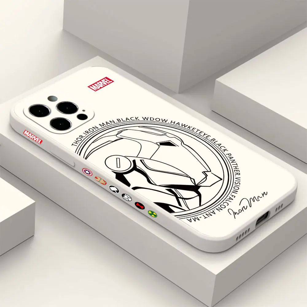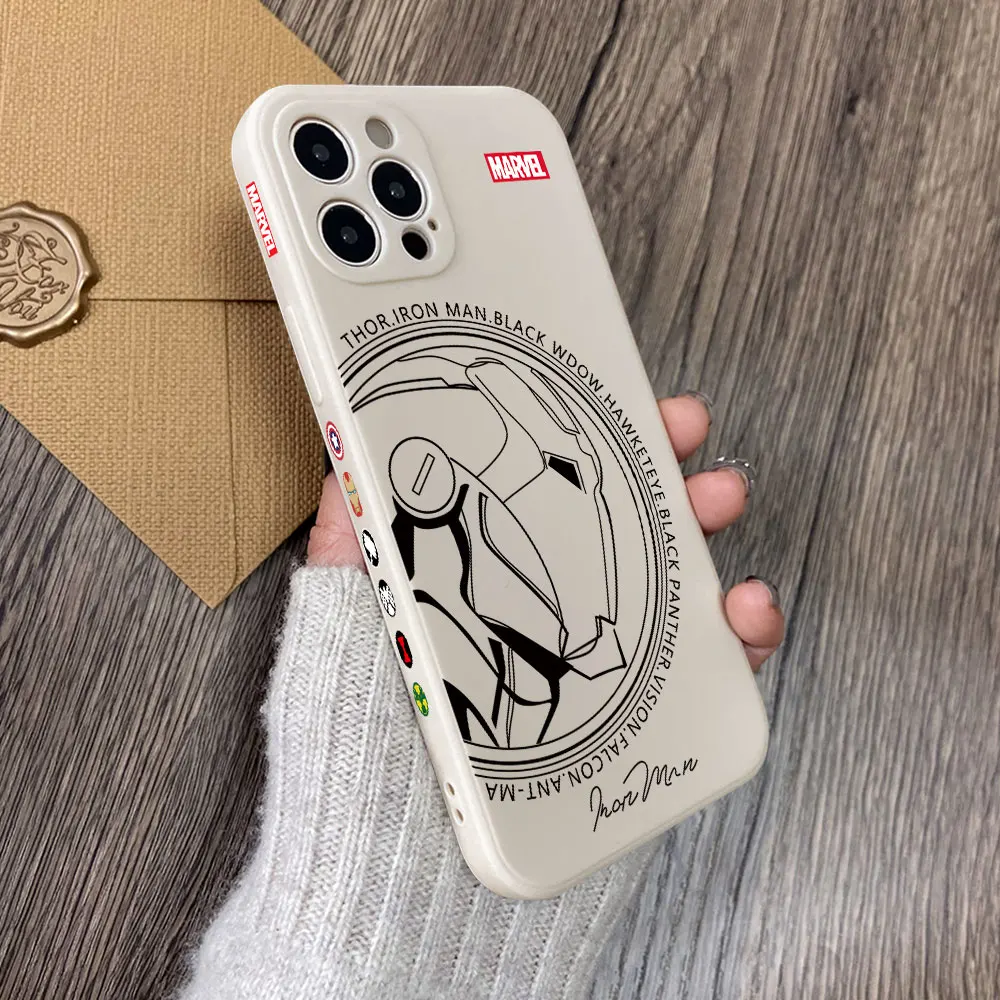 Funda de silicona suave con borde recto para iPhone, carcasa de Iron Man, Capitán América, 16, 15, 14 Plus, 13, 12 Mini, 11 Pro Max, X, Xs, XR, 7, 8
