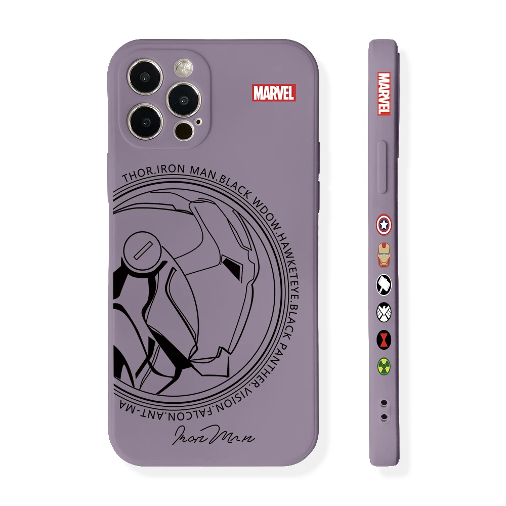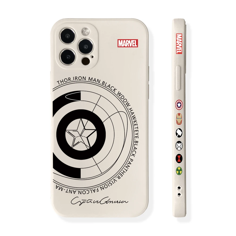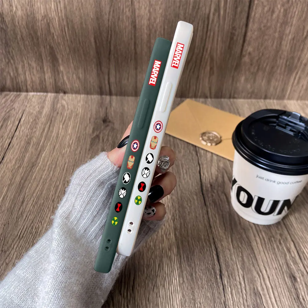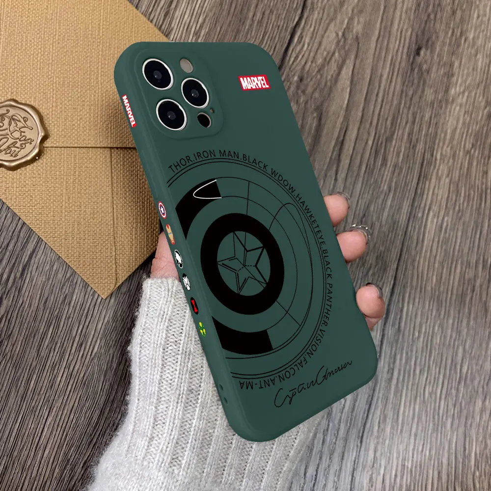 Funda de silicona suave con borde recto para iPhone, carcasa de Iron Man, Capitán América, 16, 15, 14 Plus, 13, 12 Mini, 11 Pro Max, X, Xs, XR, 7, 8