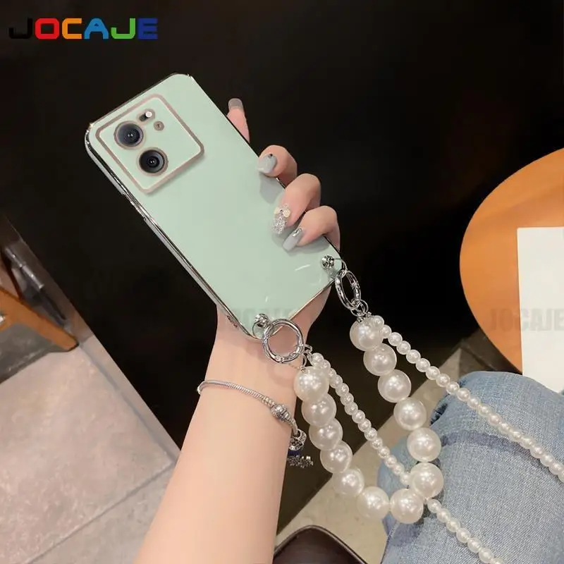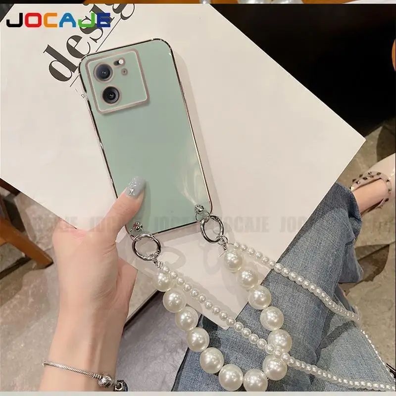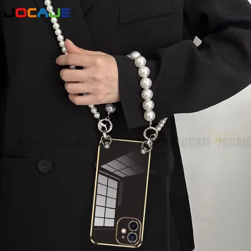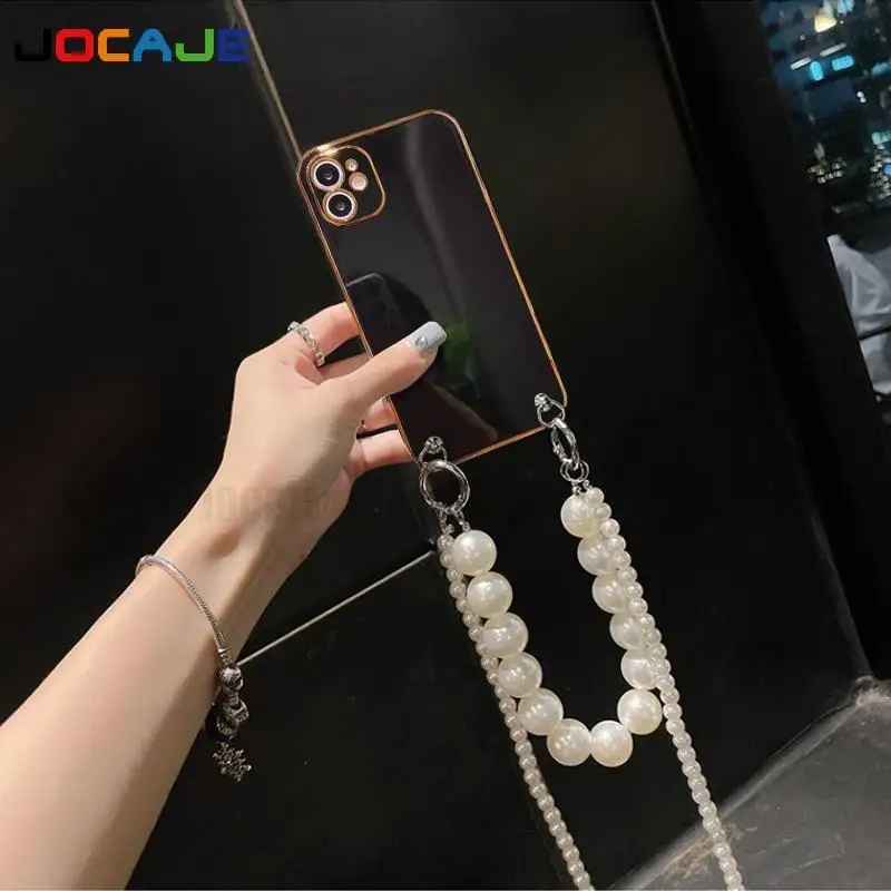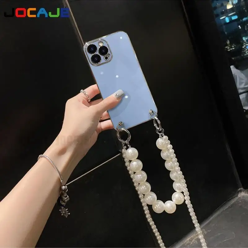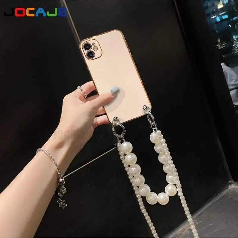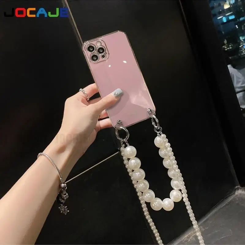 Funda de silicona suave chapada para OPPO Reno 12 Pro 12F, cadena cruzada, collar, cordón, funda de perlas para Reno 11Pro Reno 10 Pro Plus