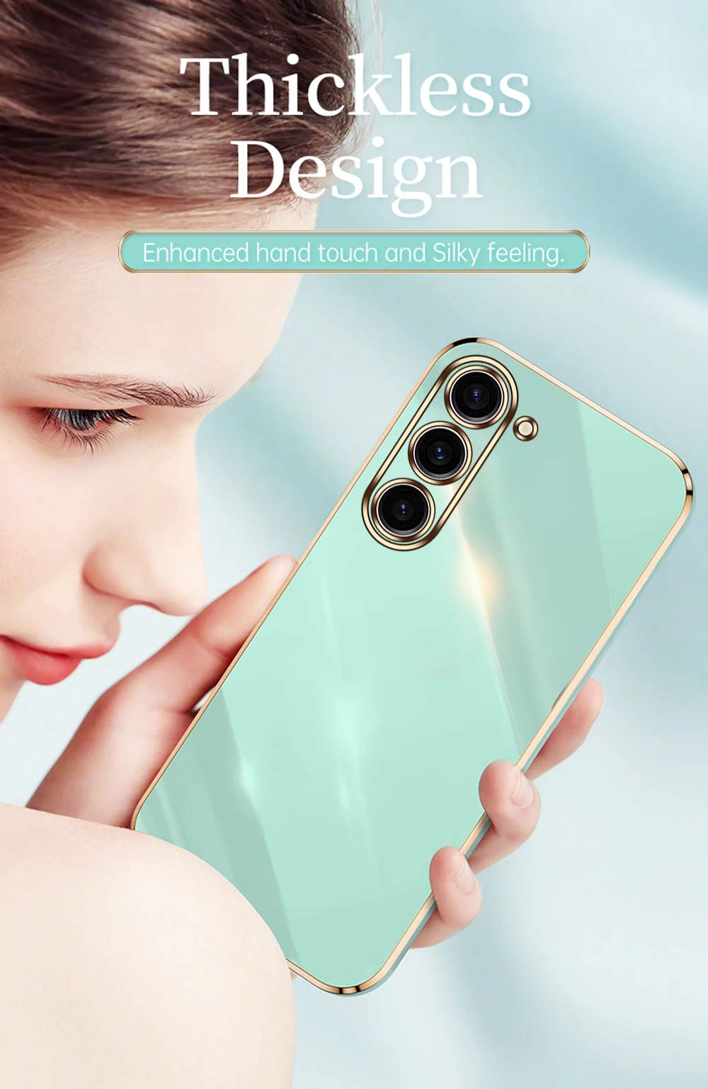 Funda blanda de silicona cuadrada chapada de lujo para Samsung Galaxy S23 5G funda protectora para cámara Fundas SamsungS23 S 23 Plus S23 + S23Plus