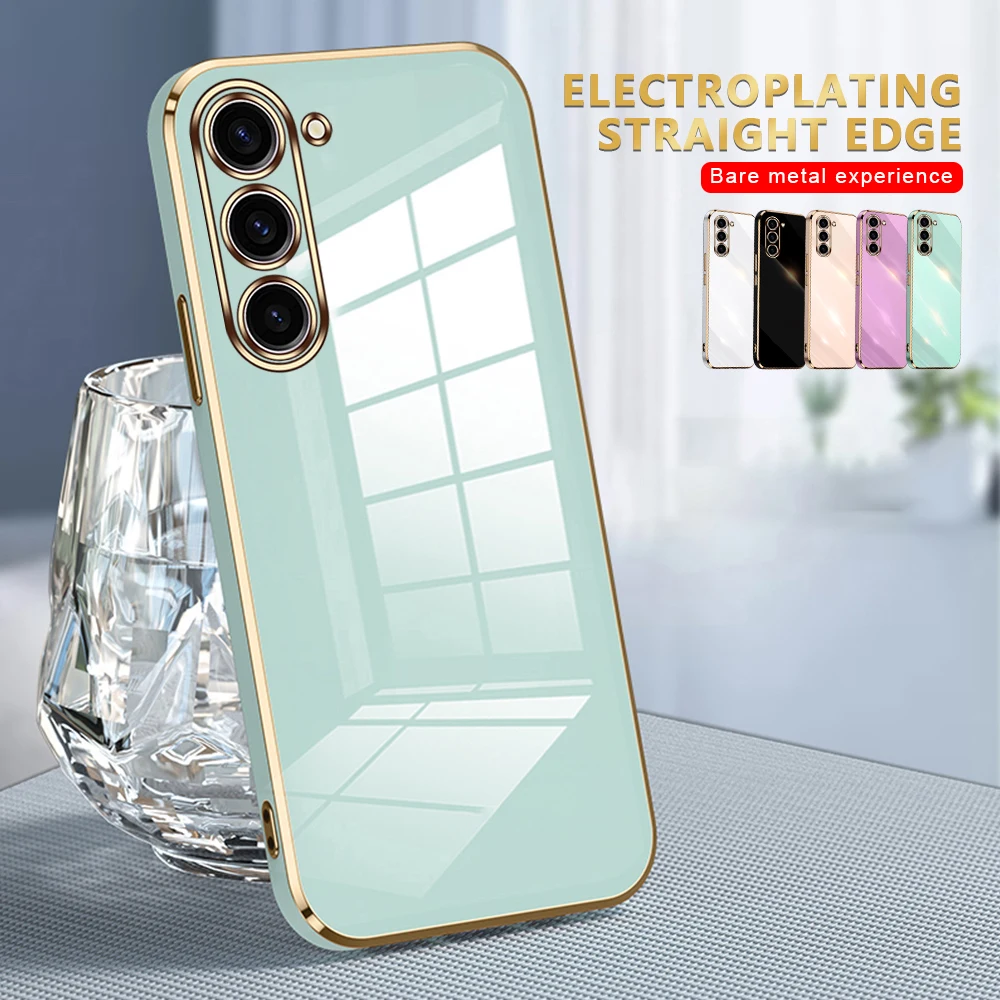 Comprar Funda de silicona suave cuadrada chapada de lujo para Samsung Galaxy S23 5G, funda protectora para cámara SamsungS23 S 23 Plus S23 + S23Plus