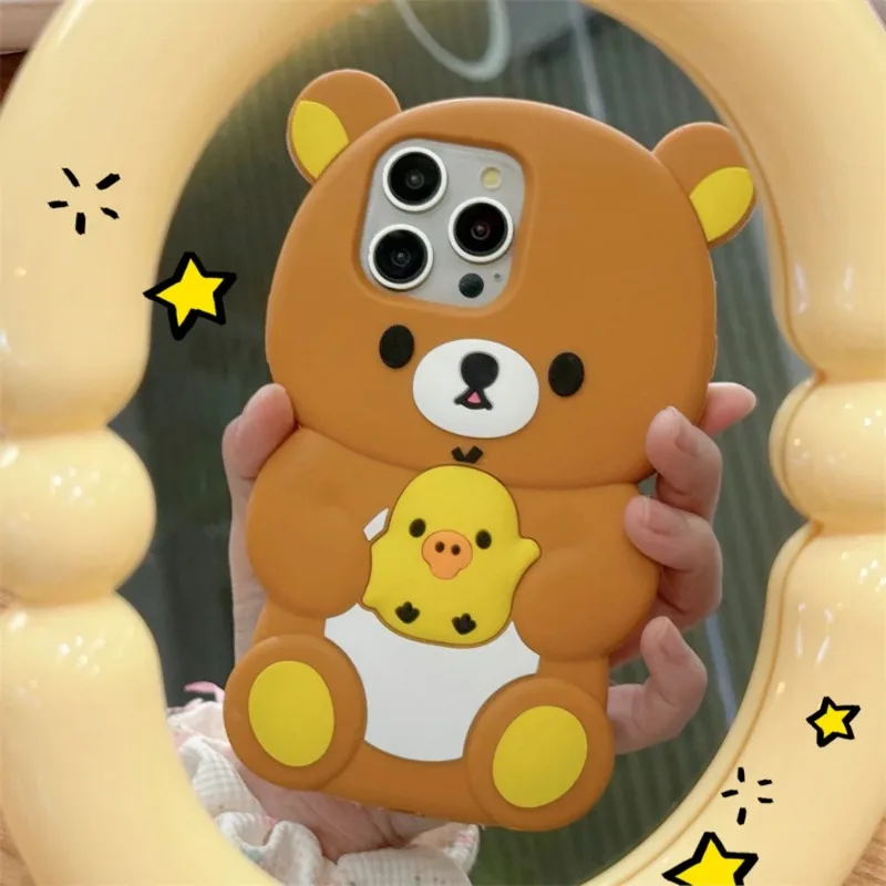 3D Animal de dibujos animados lindo oso funda de silicona suave para IPhone 13 12 14 15 Pro Max 11 IPones 15Pro IPhone15 Kawaii niños niñas cubierta
