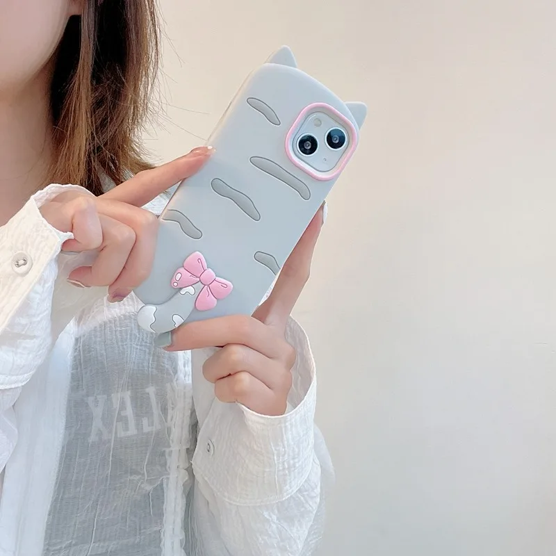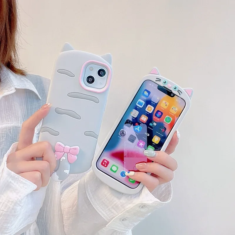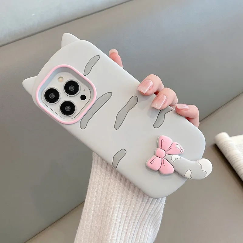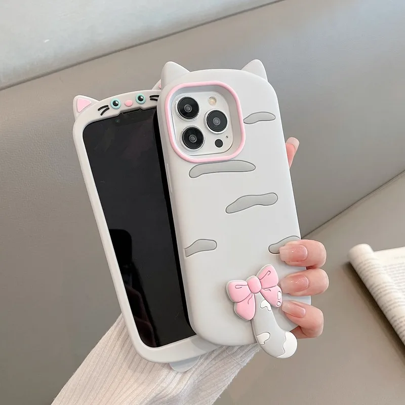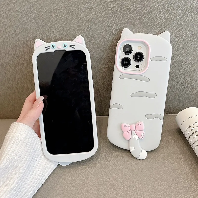 Funda de silicona suave con diseño de gato 3D a la moda para iPhone 16 Pro Max 17 Air 15 14 13 12 11 15 Plus carcasa protectora trasera de teléfono