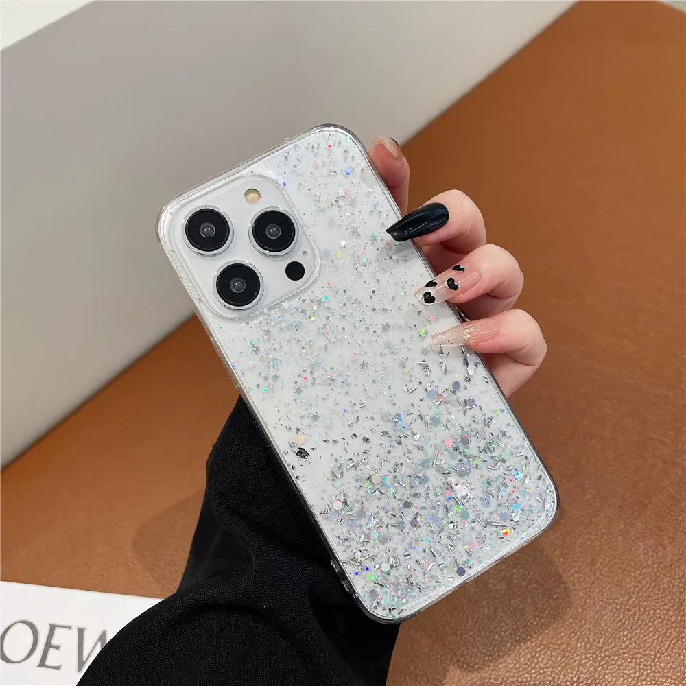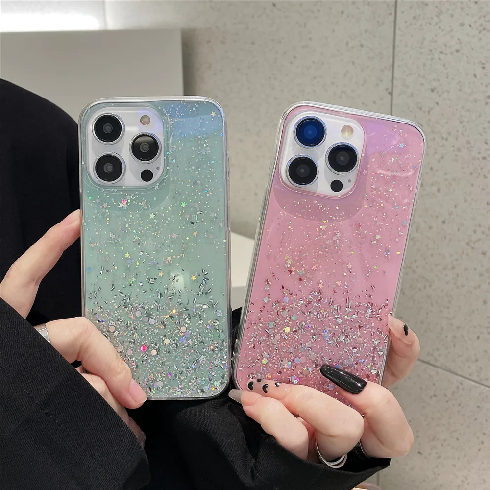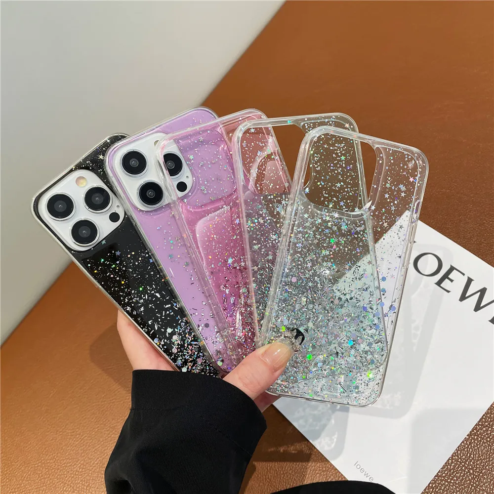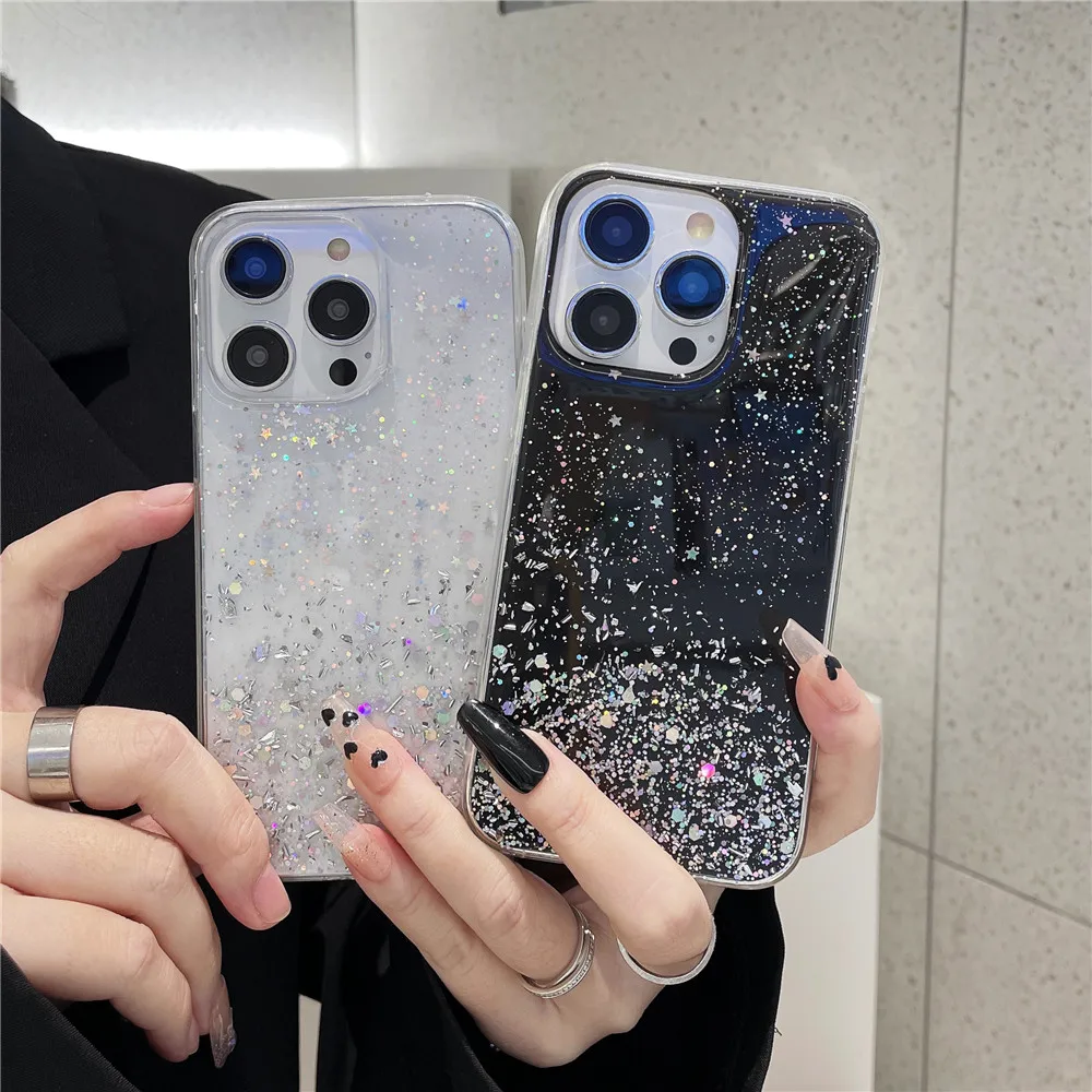 Comprar Funda de silicona suave para Huawei P50 Pro, carcasa de lujo con purpurina y estrellas brillantes para Huawei P40 Lite P30 Pro P Smart 2021 Honor 50 Nova 8