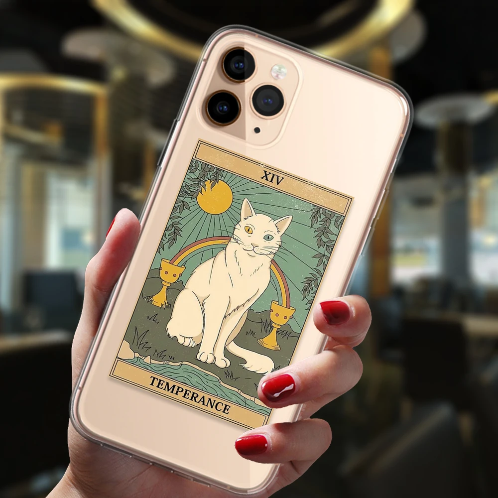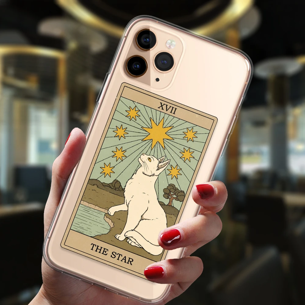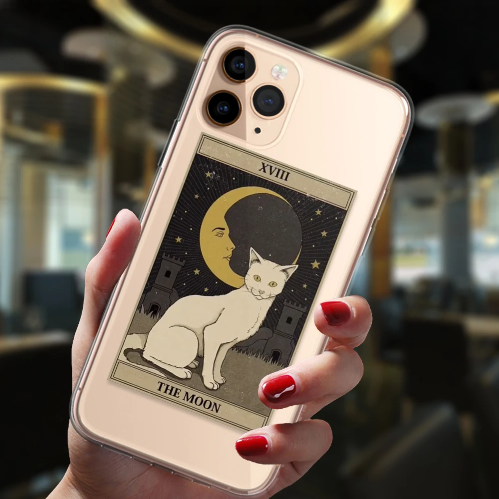 Comprar Funda de silicona suave para iPhone 13, 12, 11, 14 Pro Max, Mini, XS, XR, 6S, 7, 8 Plus, brujas populares, Luna, Tarot, tótem misterioso, gato
