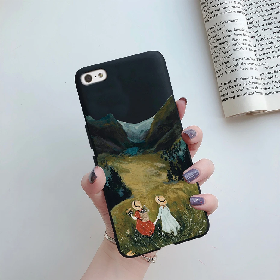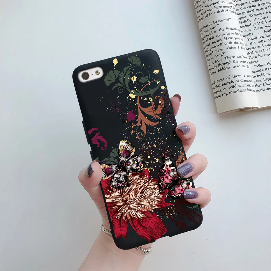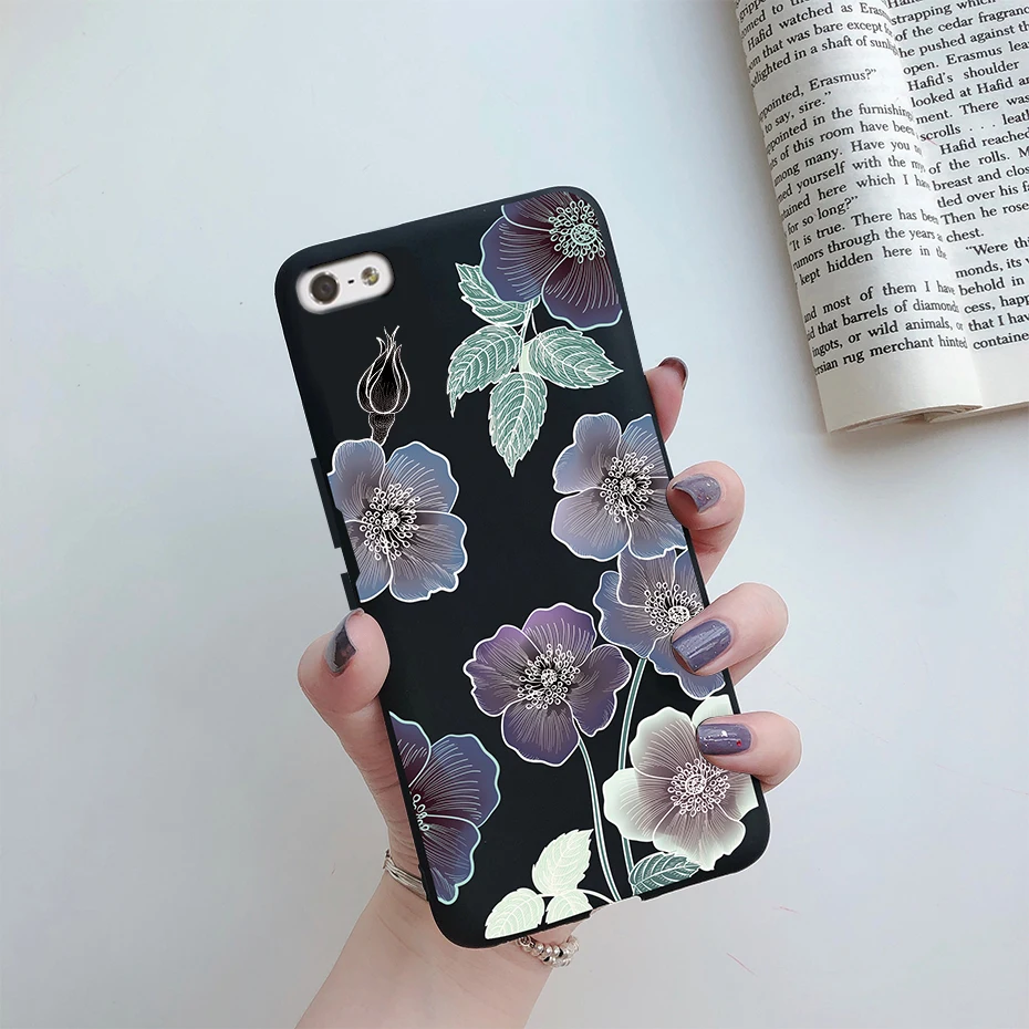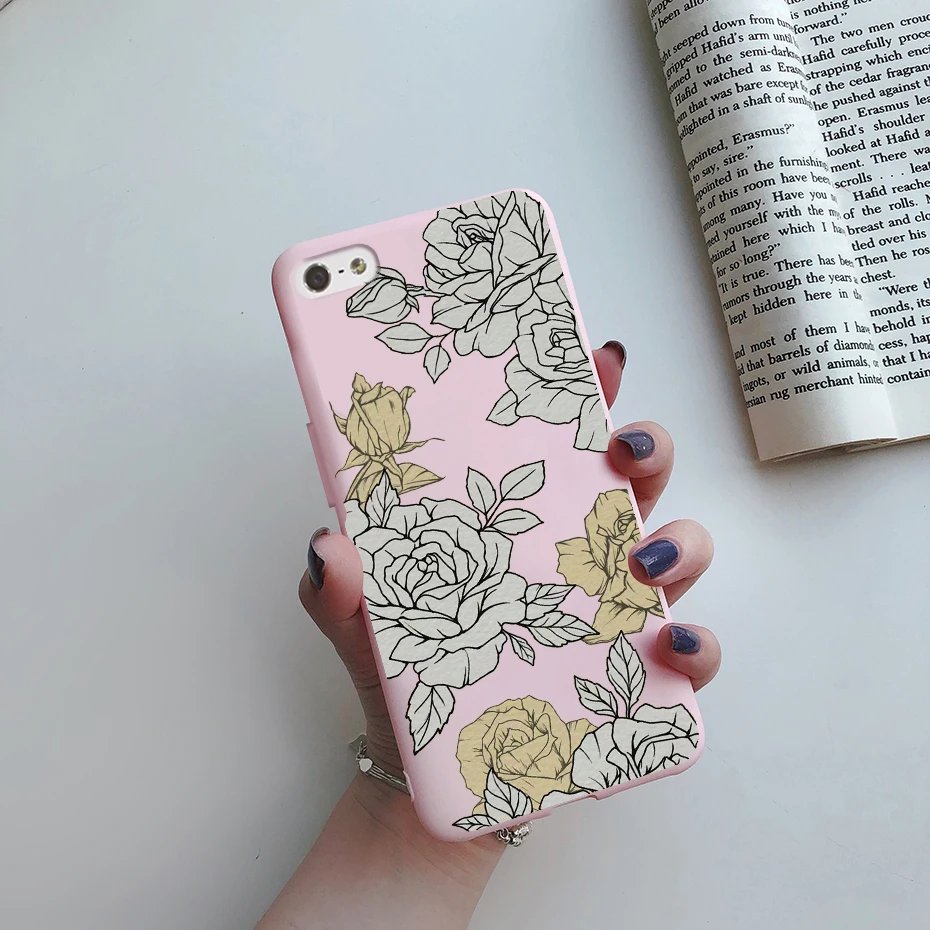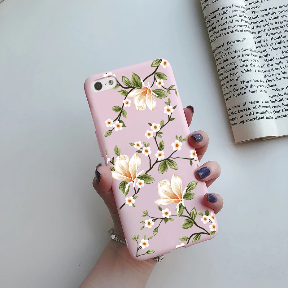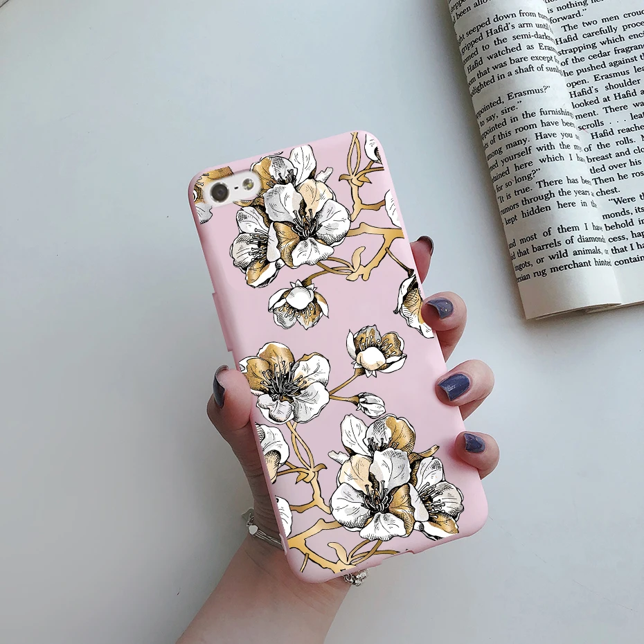 Comprar Funda de silicona suave para iPhone, carcasa trasera de TPU con flores pintadas, bonita, de animales, para iPhone 5s 5 s