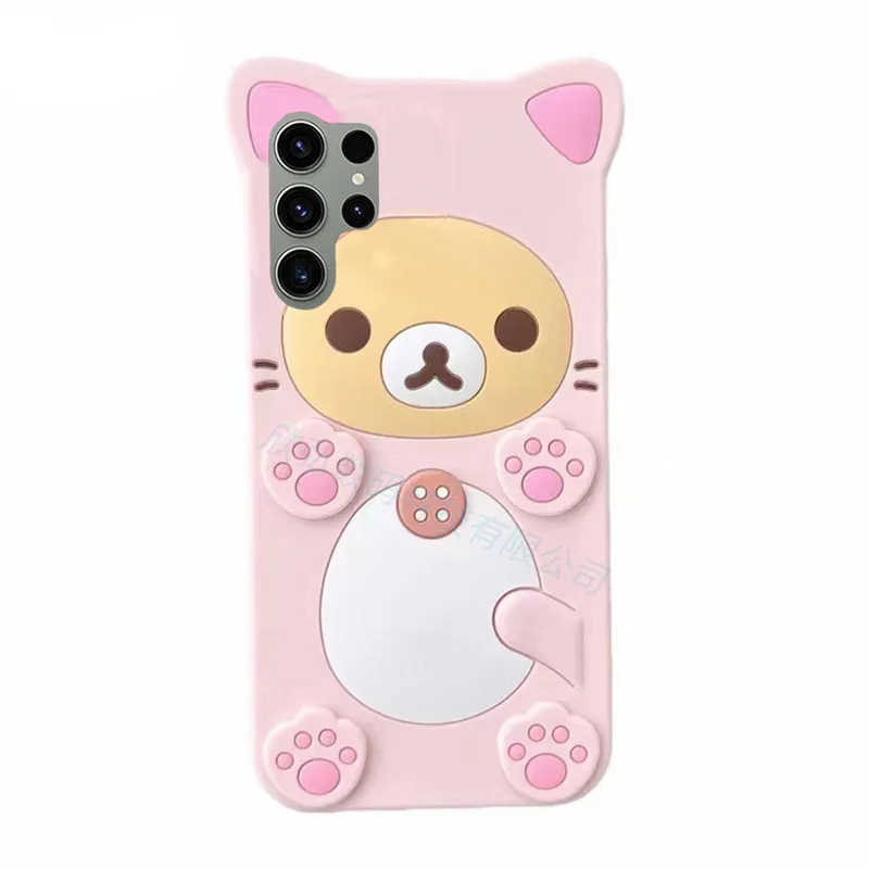 Funda de silicona suave Kawaii de oso rosa de dibujos animados bonitos en 3D para Samsung Galaxy S23 Plus S22 Ultra A14 A53 S23Ultra S22Ultra Funda divertida