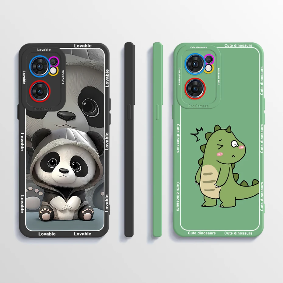 Comprar Funda de silicona suave líquida para Oppo Reno7 5G, cubierta trasera protectora de dinosaurio Panda lindo para Oppo Reno 7 5G, carcasa de teléfono