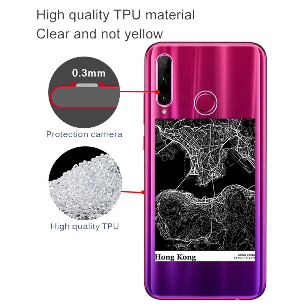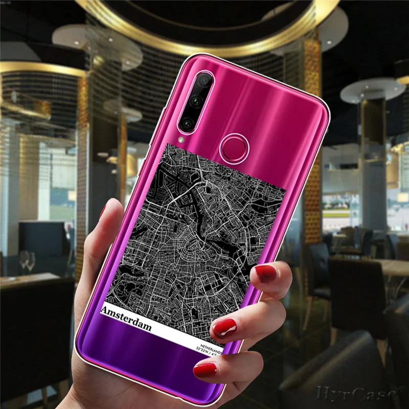 Funda de teléfono de silicona suave con Mapa Mundial de la ciudad de Moscú de Nueva York para Huawei Honor 10i 20i 30i 9 10 20 30 Lite Pro 9X 8X 8C