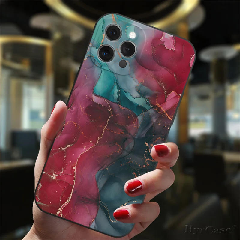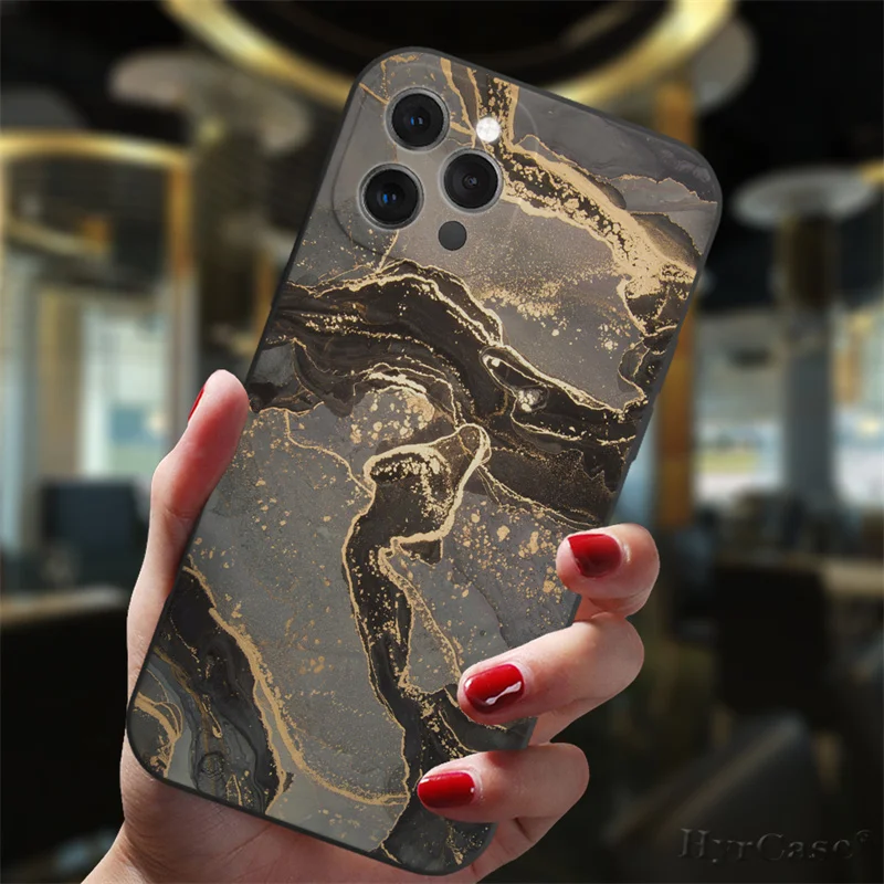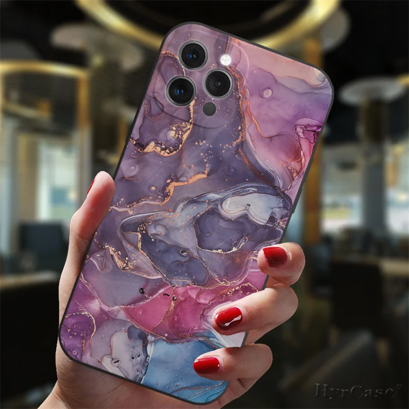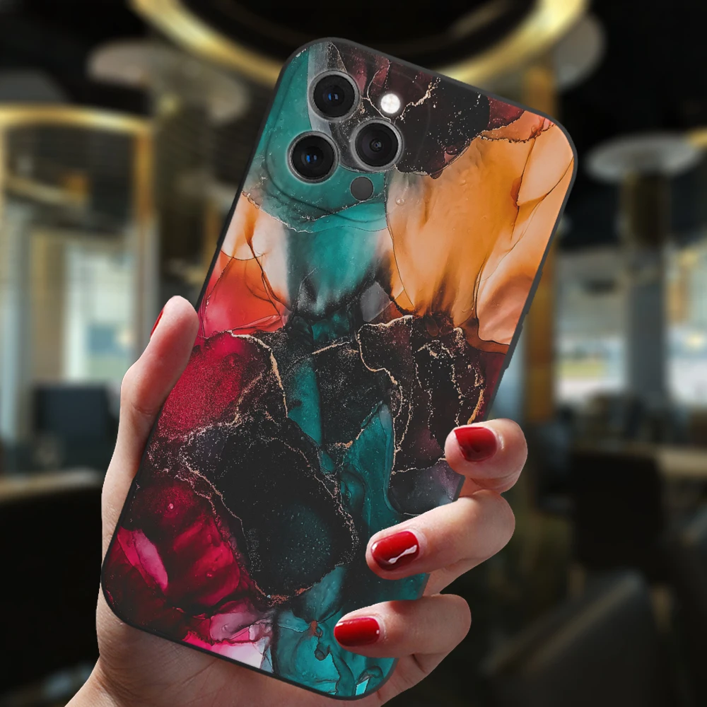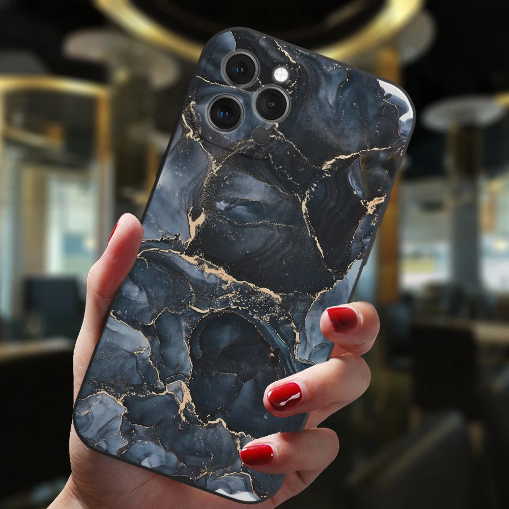 Para iPhone 13 12 11 14 Pro Max Mini XS XR 14Plus funda negra Popular gradiente de mármol del océano moda silicona suave cubierta mate