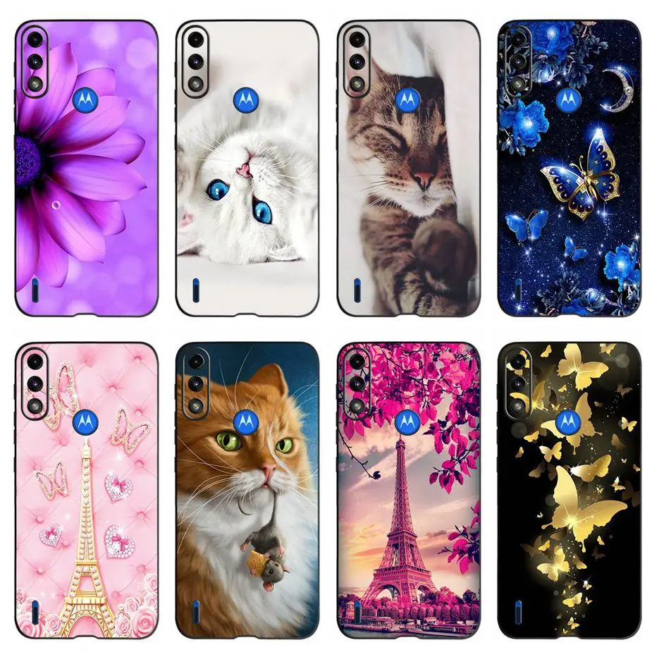 Comprar Funda de silicona suave para Motorola Moto E7 Power, carcasa bonita de gato y mariposa, a prueba de golpes
