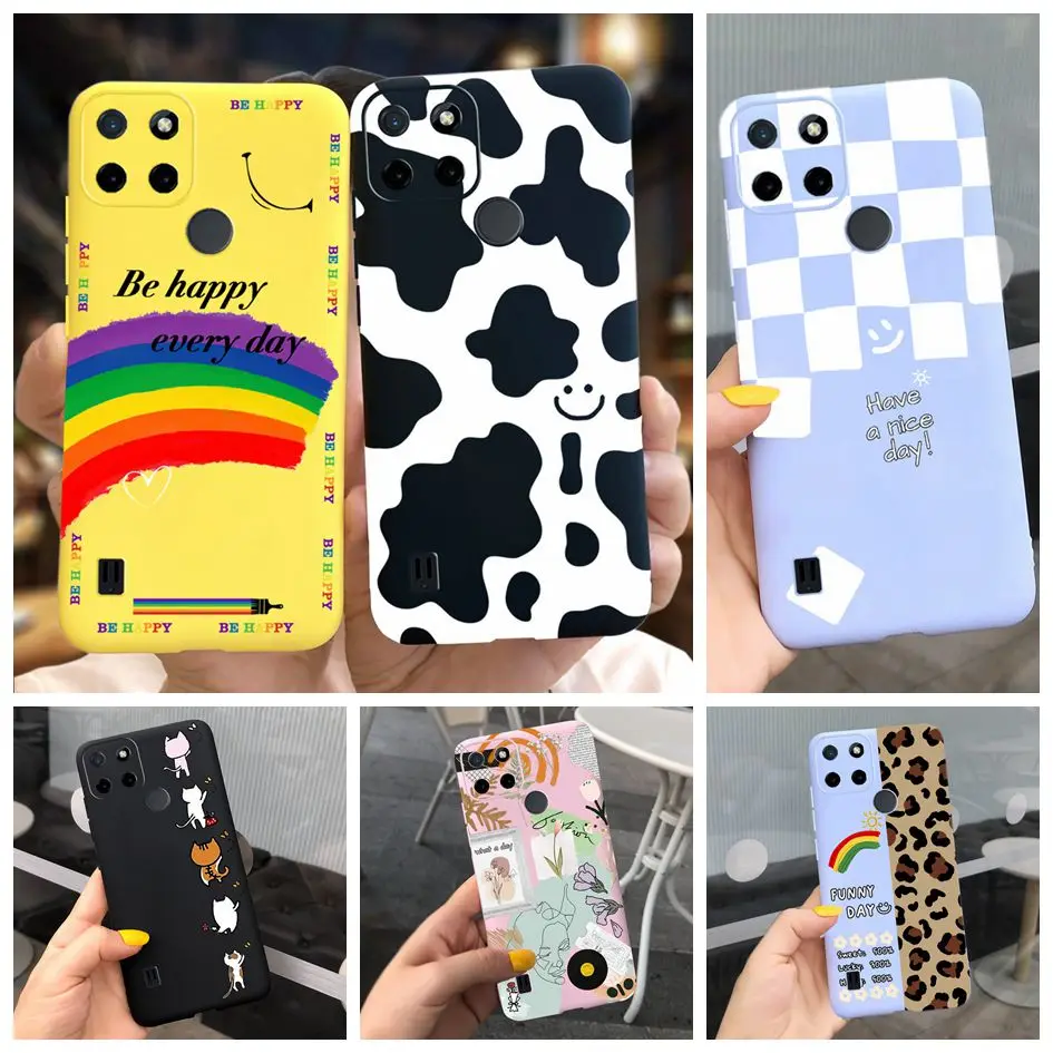 Para Realme C21Y Funda Realme C25Y C25S Funda de teléfono a prueba de golpes silicona suave vaca dibujos animados Funda trasera para Realme C21 C25 C 25 parachoques