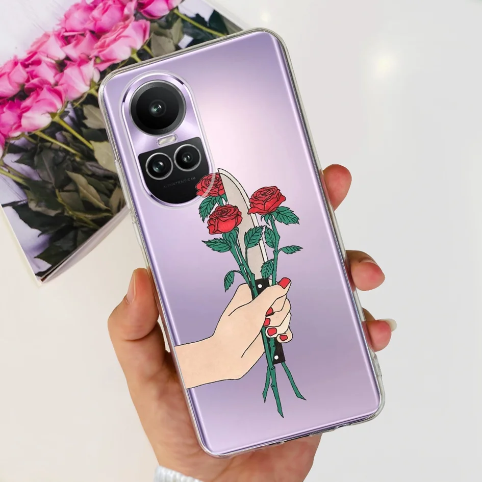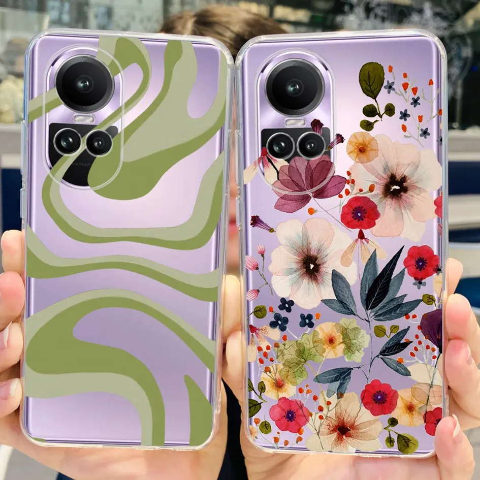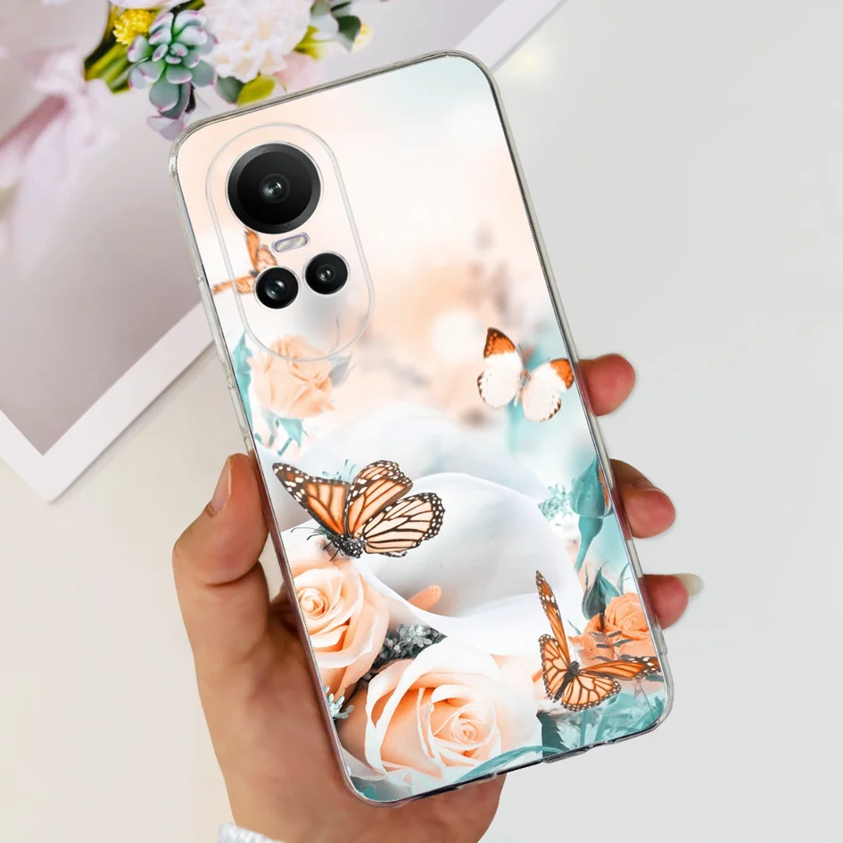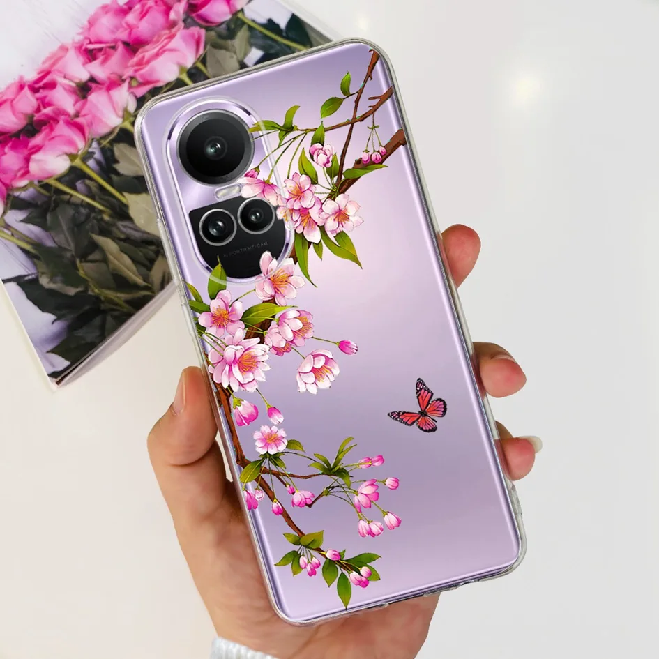 Comprar Funda de silicona suave para OPPO Reno 10 Pro, carcasa trasera de TPU, con diseño de mariposa y flores, a la moda, parachoques