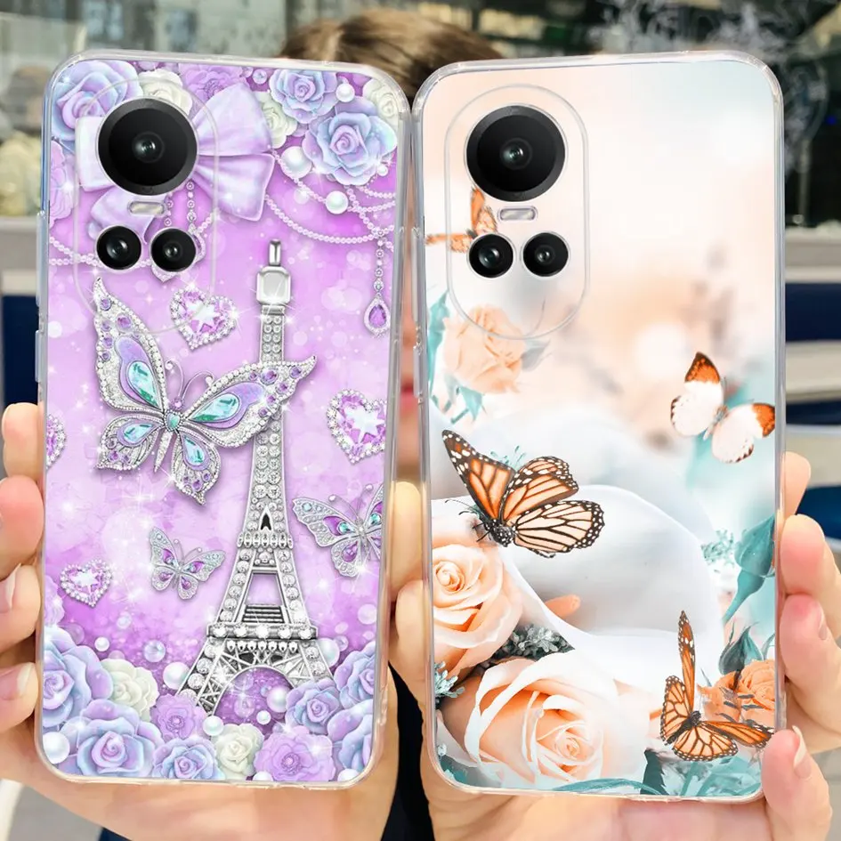 Para OPPO Reno 10 Pro Global Case moda Flor Mariposa silicona suave TPU teléfono contraportada para OPPO Reno 10 Pro + Reno10 parachoques