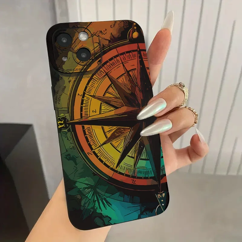 Funda de silicona suave con patrón de brújula para iPhone, 11, 12, 13, 14, 15, 16 Pro Max, XS, X, XR, 7, 8 Plus, 16, a prueba de golpes