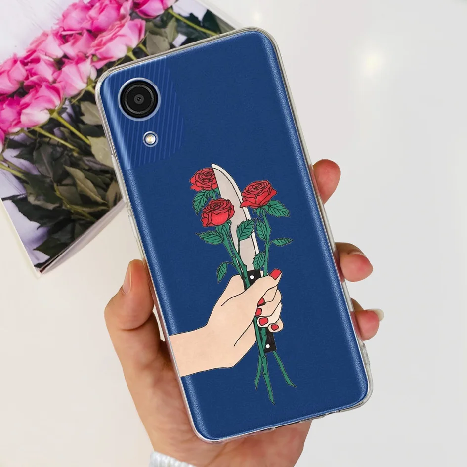 Comprar Funda de silicona suave para Samsung Galaxy A03 Core, carcasa transparente con diseño de flores y mariposas, A032F