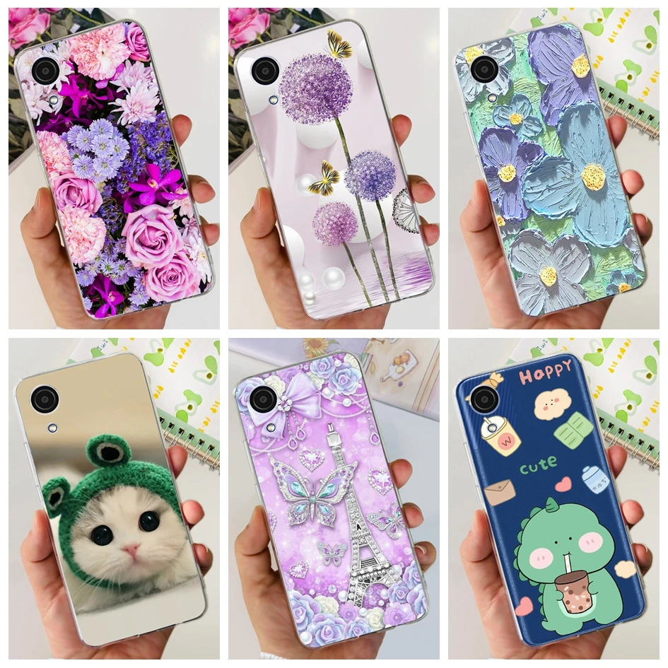 Comprar Funda de silicona suave para Samsung Galaxy A03 Core, carcasa transparente con diseño de flores y mariposas, A032F