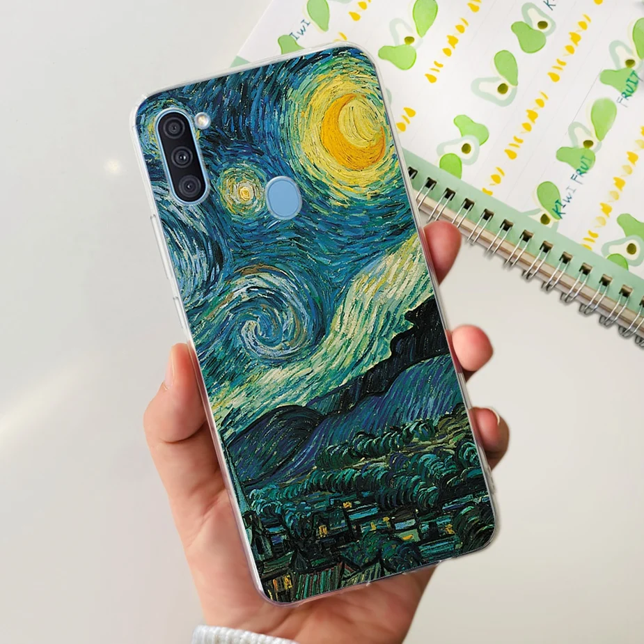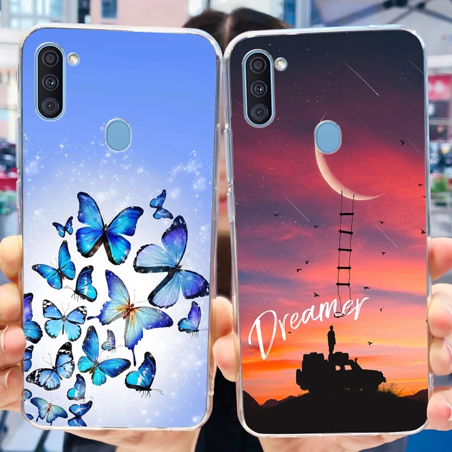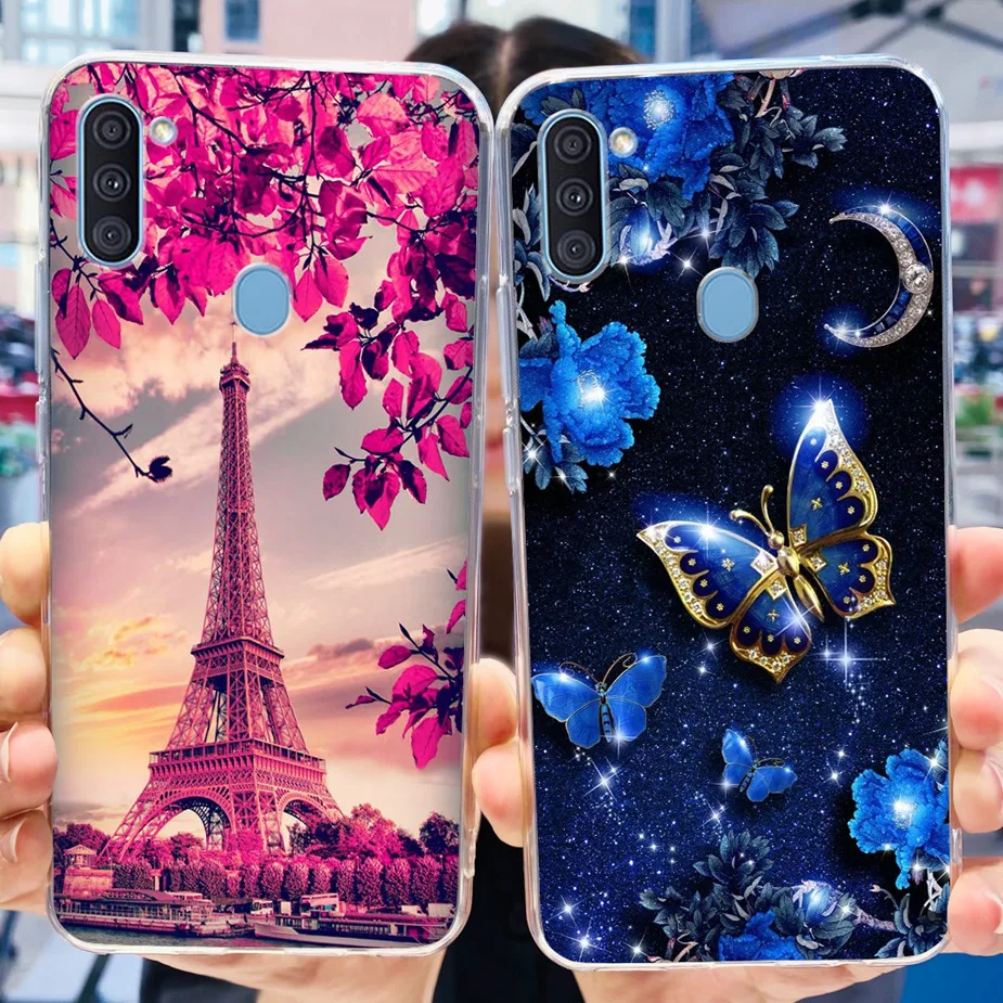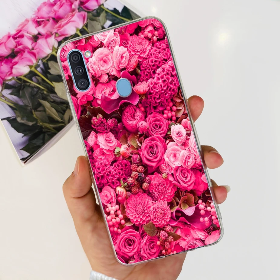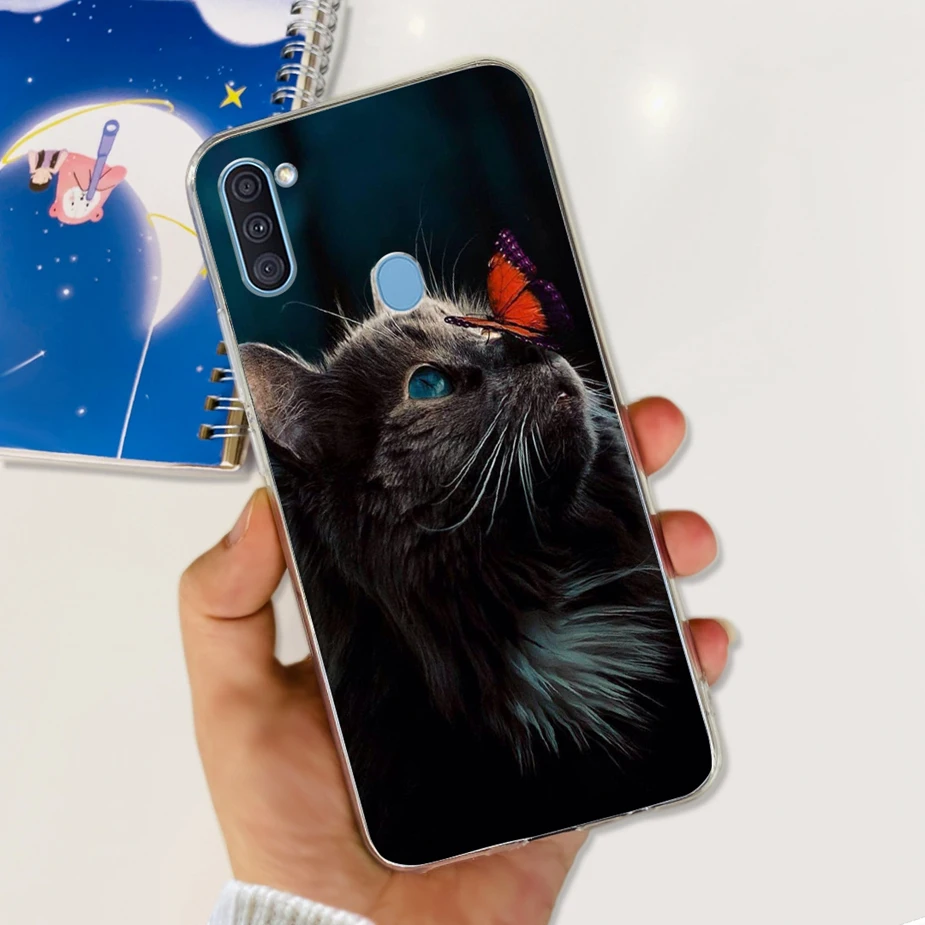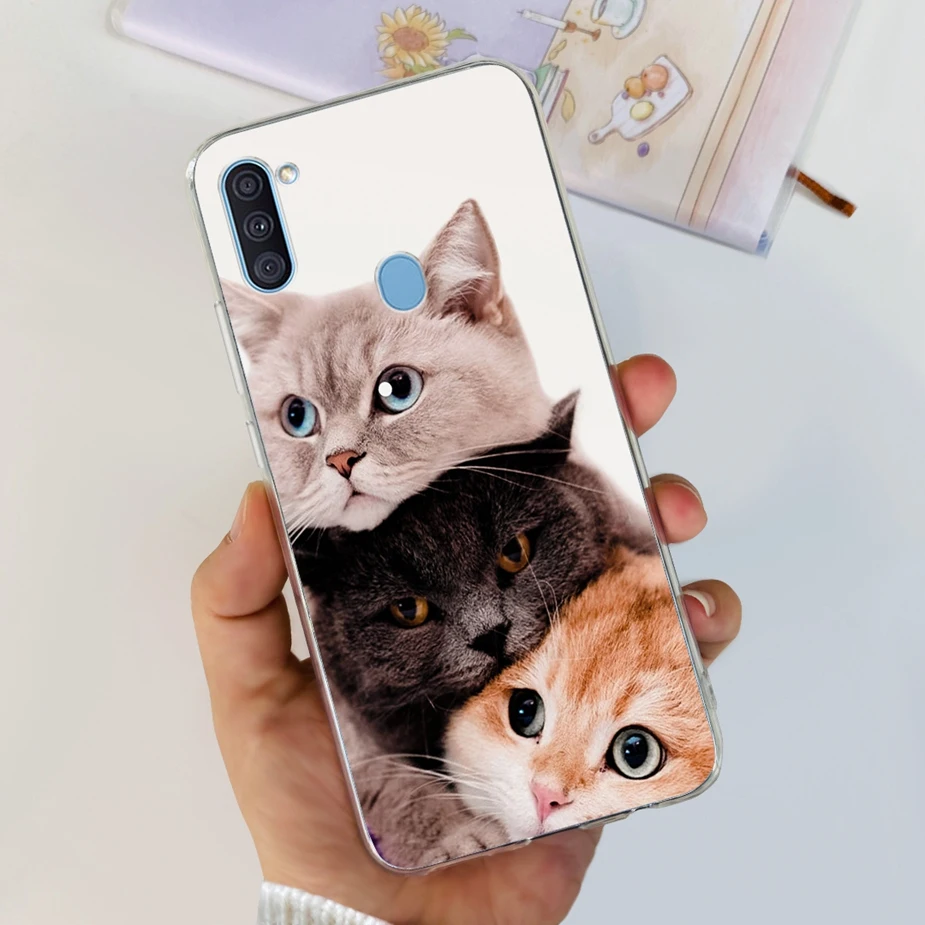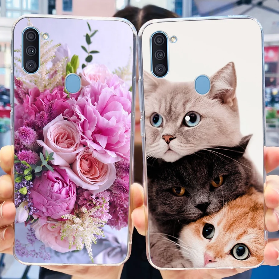 Para Samsung Galaxy A11 funda M11 elegante flores gato pintado funda de silicona suave para Samsung A11 M 11 Galaxy M11 Shell