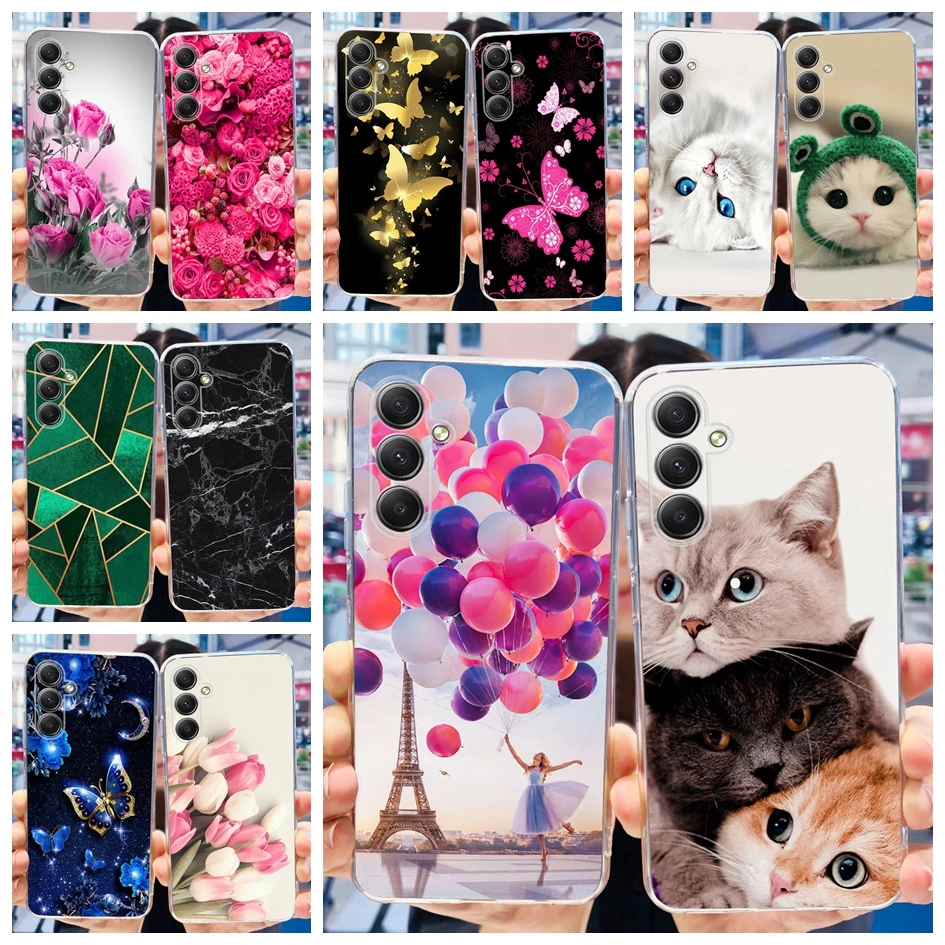 Para Samsung Galaxy A25 5G funda de silicona suave TPU parachoques lindo gato de dibujos animados mariposa funda de teléfono para Samsung A25 5G 2023 A 25 Capa