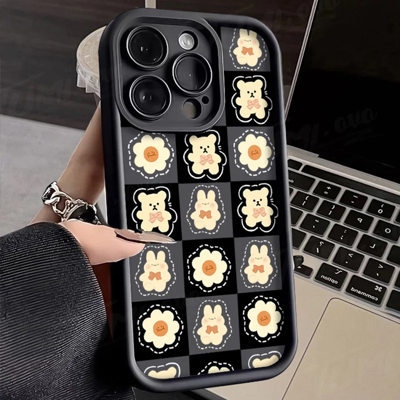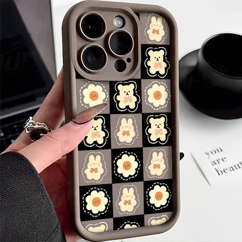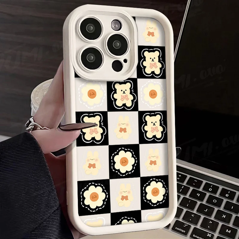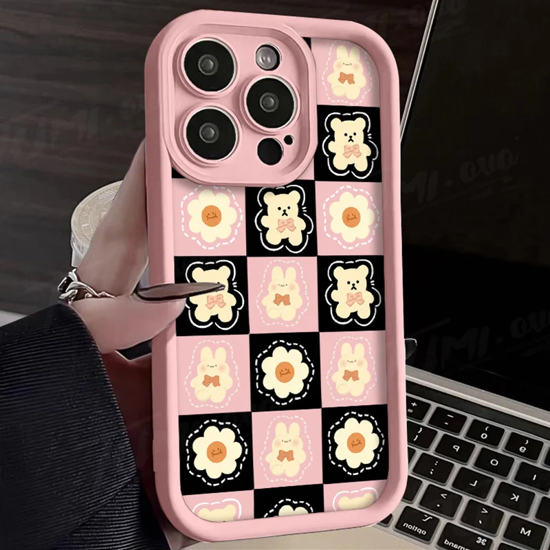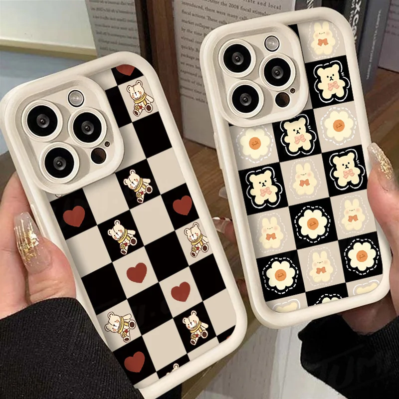 Comprar Funda de silicona suave para Samsung Galaxy S24 Ultra, S23 FE, S22, S21 Plus FE, A54, A34, A14, A73, A53, A33, 5G, Retro Grid Bear Rabbit