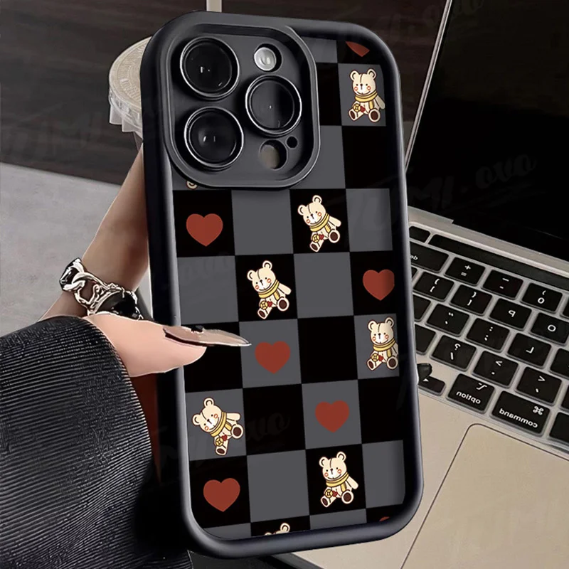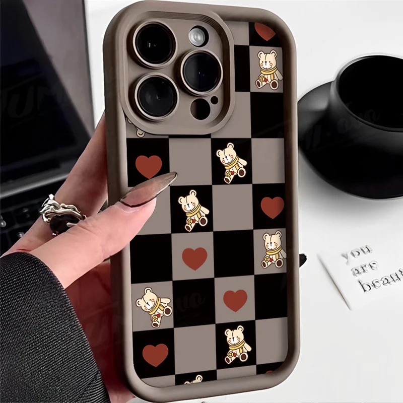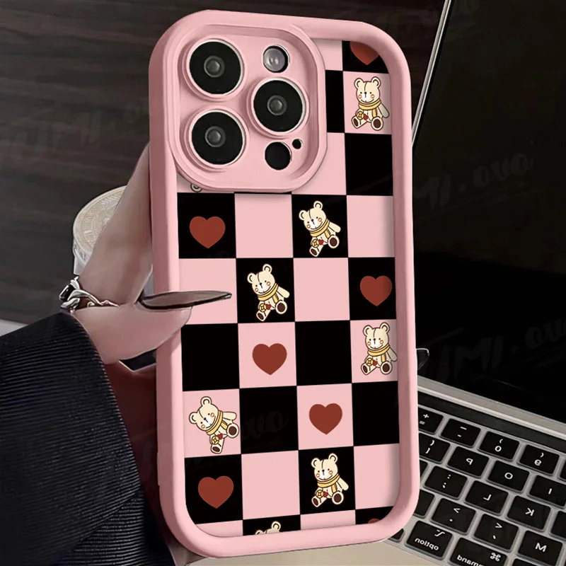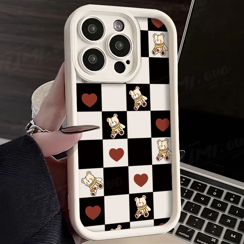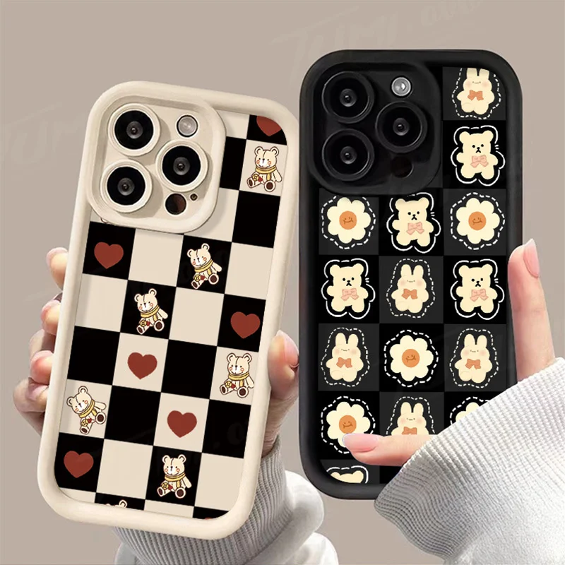 Comprar Funda de silicona suave para Samsung Galaxy S24 Ultra, S23 FE, S22, S21 Plus FE, A54, A34, A14, A73, A53, A33, 5G, Retro Grid Bear Rabbit
