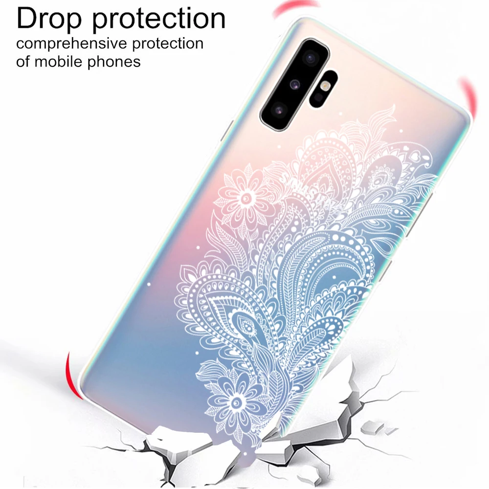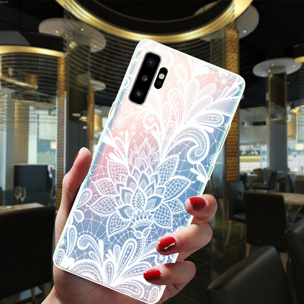 Funda de silicona suave Floral Sexy con encaje de flores Mandala blanca para Samsung NOTE 20 Ultra 5G Note 10 Lite 9 8 J3 J5 J7 J4 J6 Plus