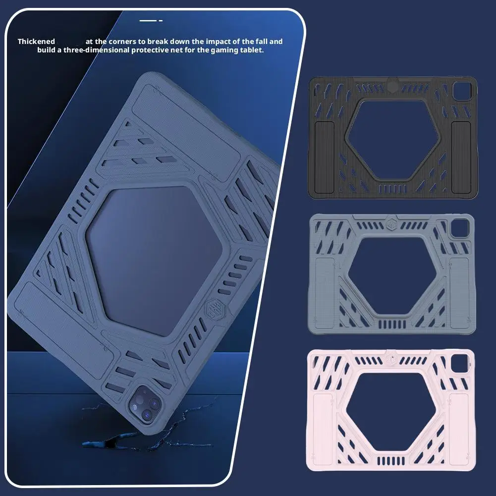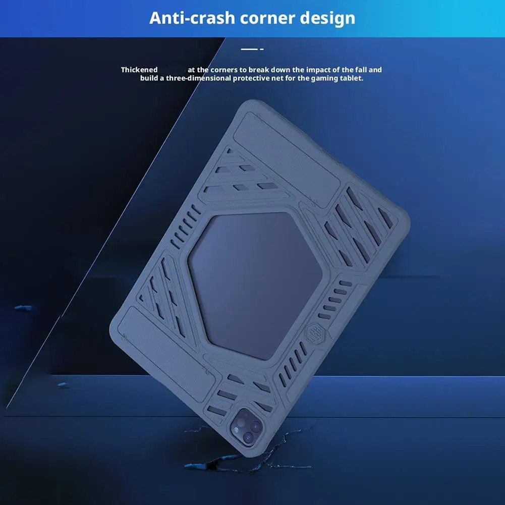 1.Diseñado para jugadores hardcore, funda para tableta, 360° protección contra caídas, juegos divertidos, aberturas dedicadas para radiador/empuñadura