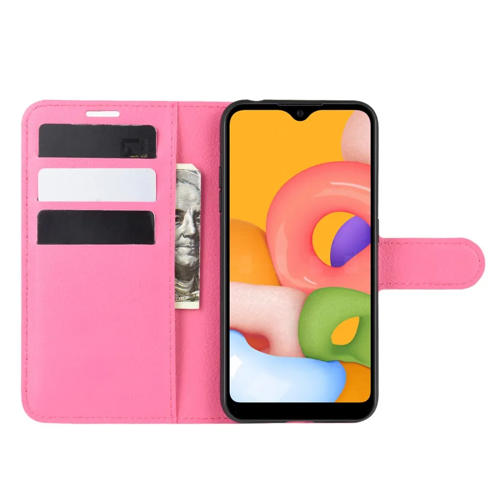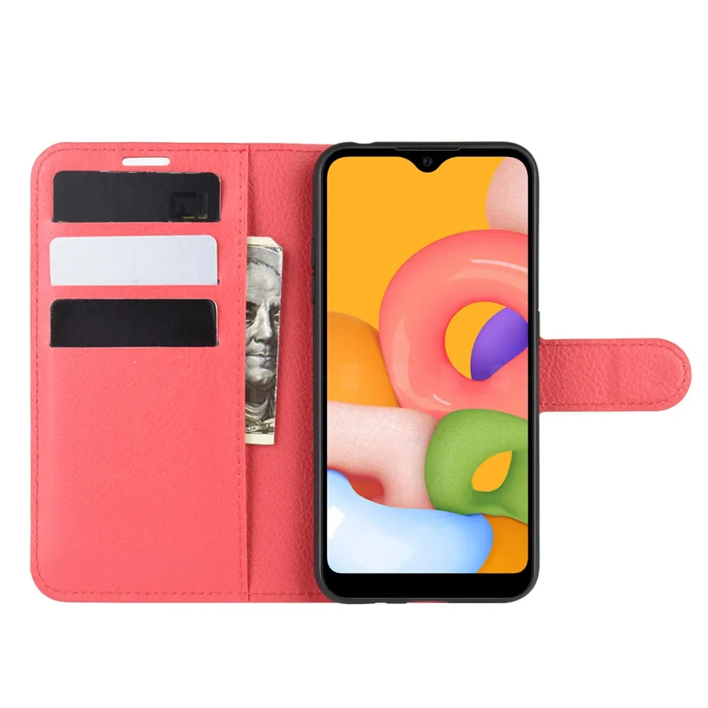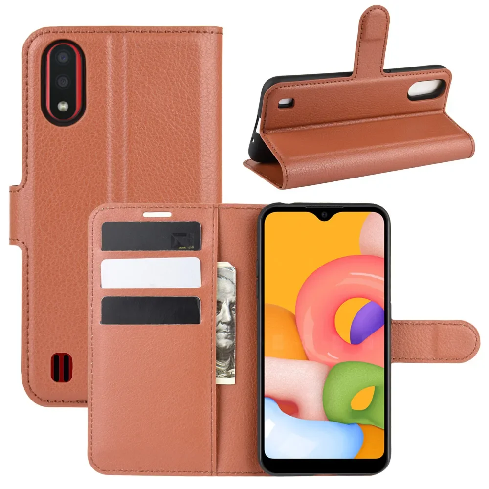 Comprar Funda de silicona suave con tapa para Samsung Galaxy A01, carcasa de cuero para Samsung A01, con soporte, bolsa para teléfono