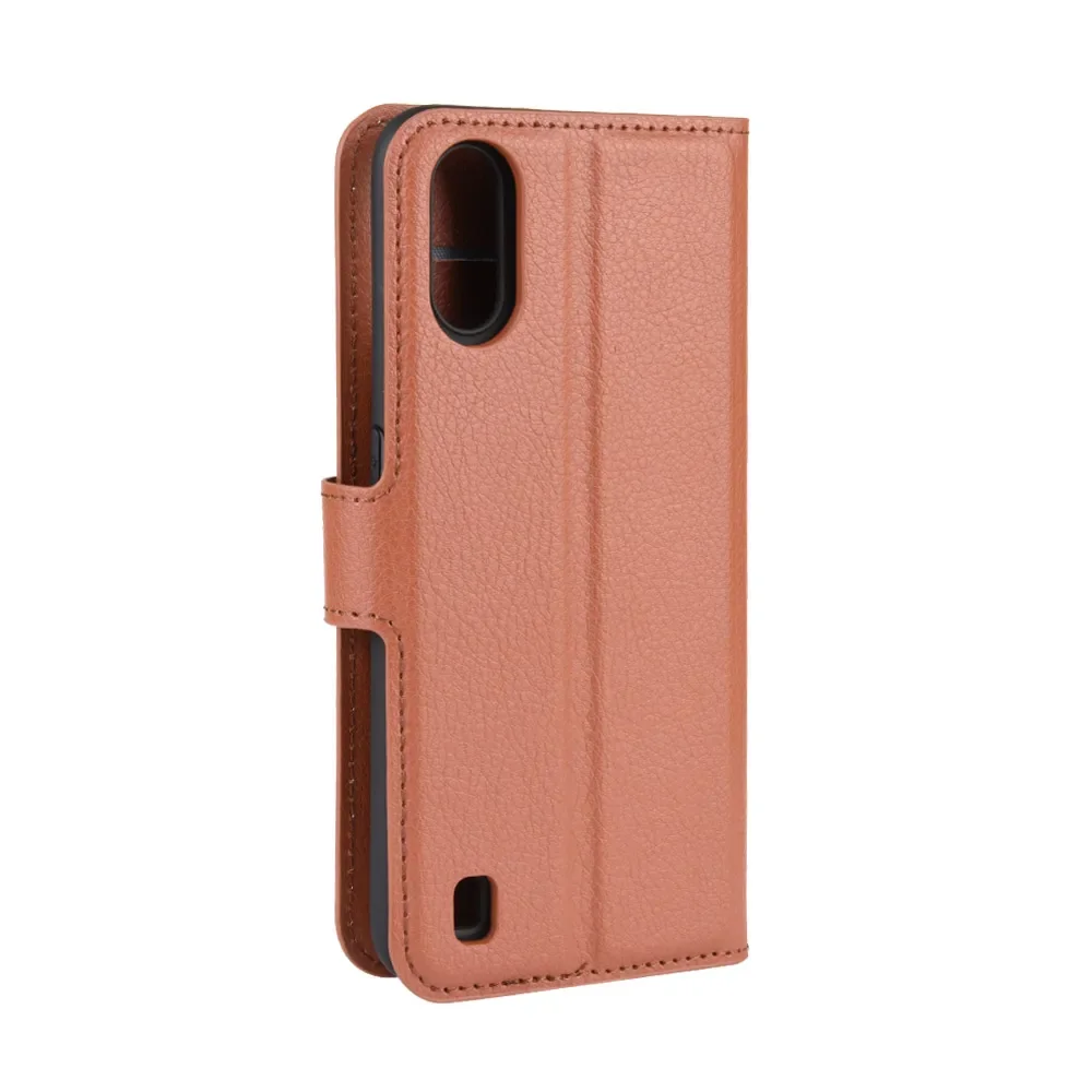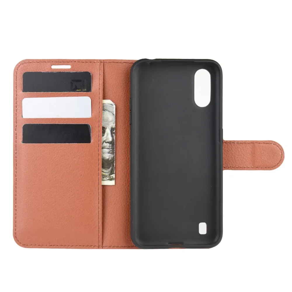 Para Samsung Galaxy A01 Funda de cuero con tapa de silicona suave para Samsung A01 Funda con soporte para teléfono