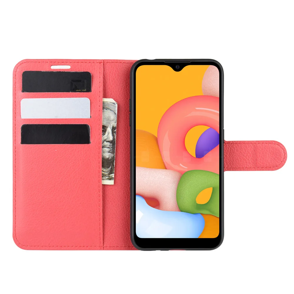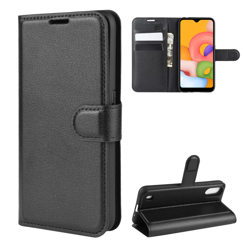 Comprar Funda de silicona suave con tapa para Samsung Galaxy A01, carcasa de cuero para Samsung A01, con soporte, bolsa para teléfono