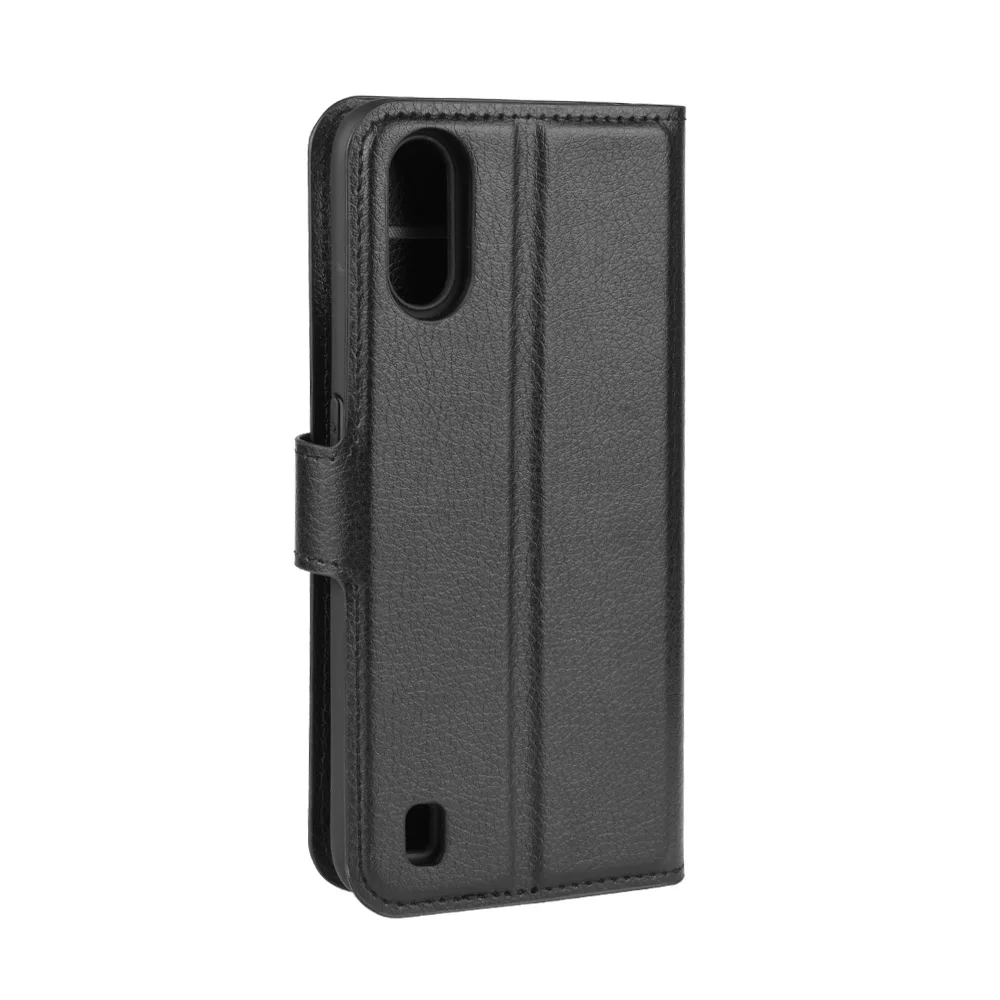 Para Samsung Galaxy A01 Funda de cuero con tapa de silicona suave para Samsung A01 Funda con soporte para teléfono