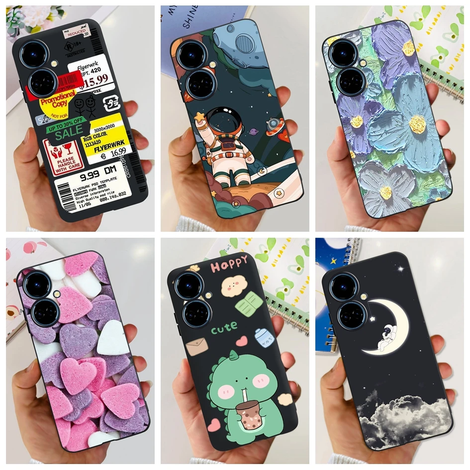 Para Tecno Camon 19 2022 funda bonita astronauta dinosaurio a prueba de golpes silicona suave TPU negro Funda de teléfono para Tecno Camon19 CI6n Funda