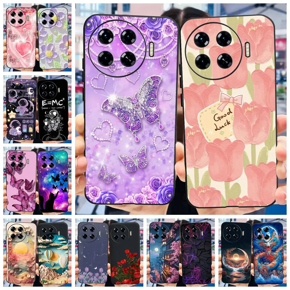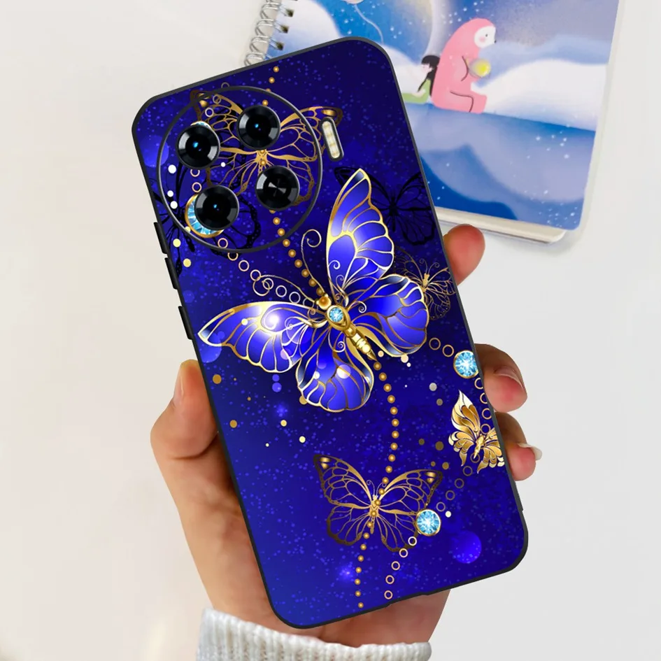 Funda para Tecno Spark 20 Pro Plus KJ7, Funda de moda con flor de mariposa, parachoques transparente de silicona suave para Tecno Spark 20 Pro + Funda de TPU