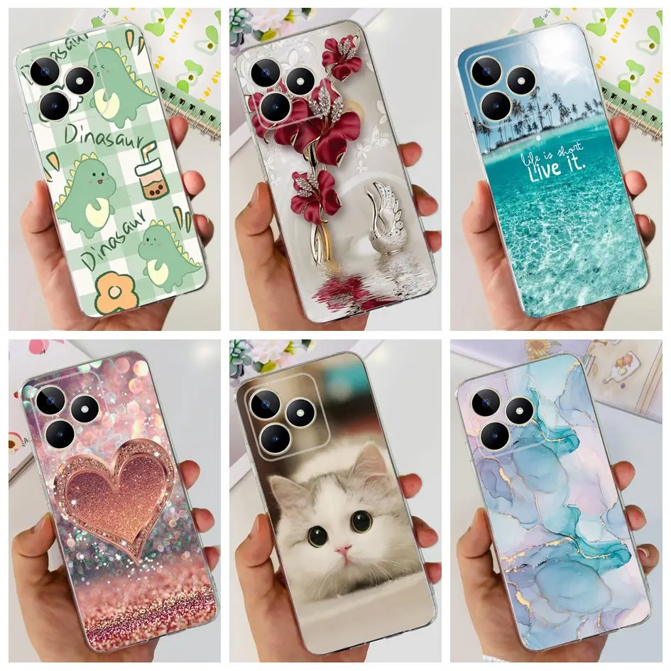 Para C51 funda RMX3830 funda de lujo de dibujos animados de gato de mármol funda de teléfono de silicona suave para Realme C51 4G C 51 RealmeC51 parachoques nuevo