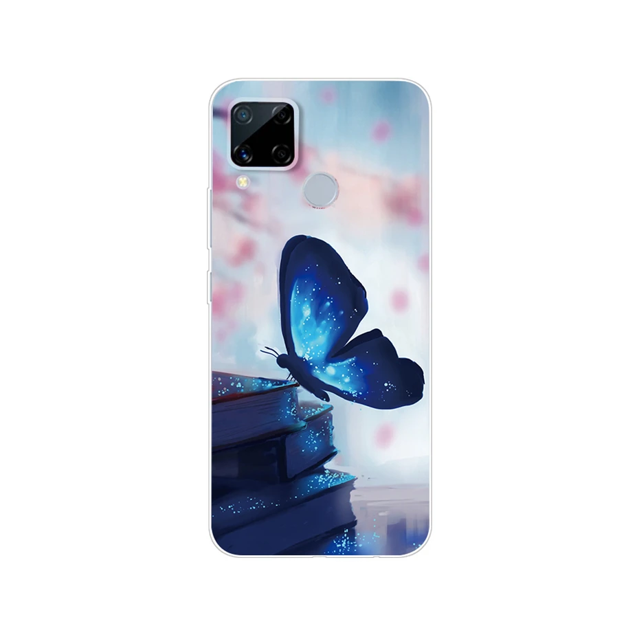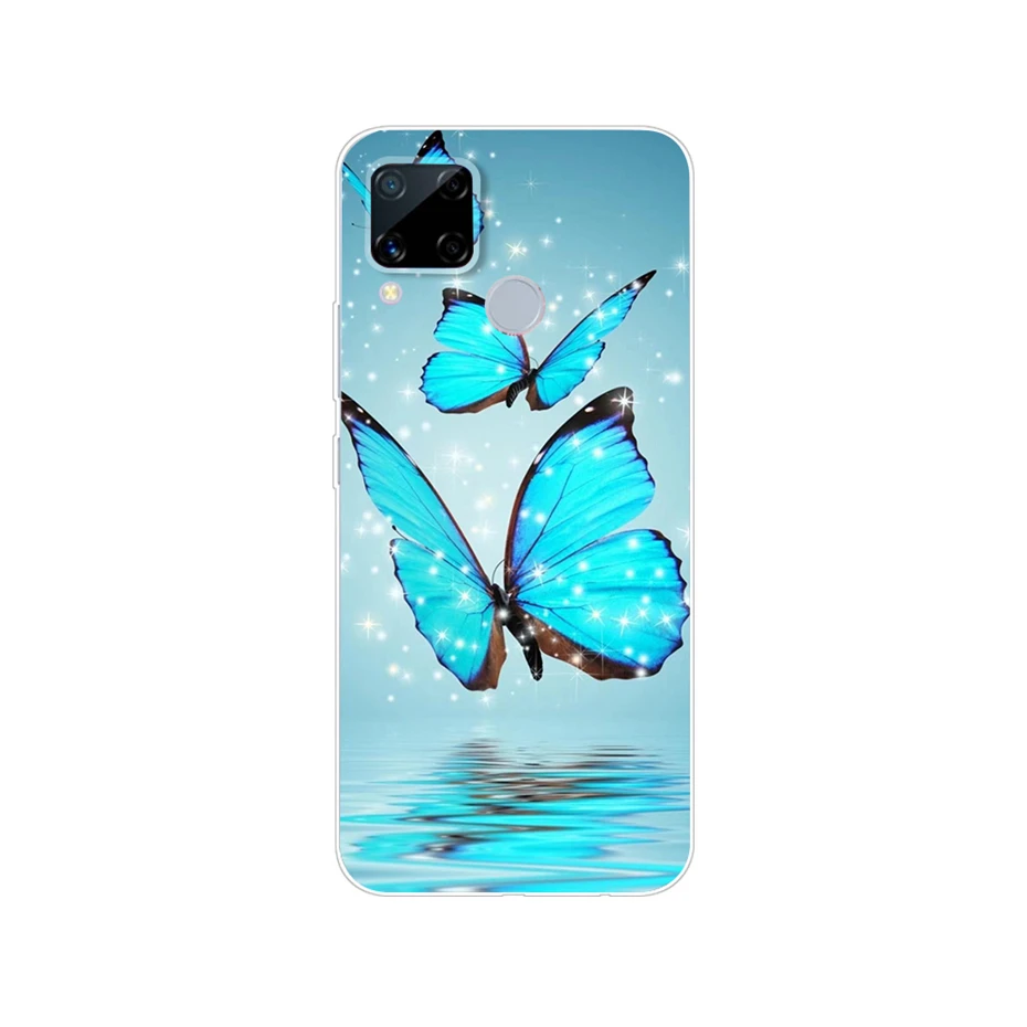 Funda de teléfono para Realme C25 C25S C12 C15 2021 Funda trasera de silicona suave mariposa azul para Realme C15 2020 RMX2180 C 15 C 25 Funda