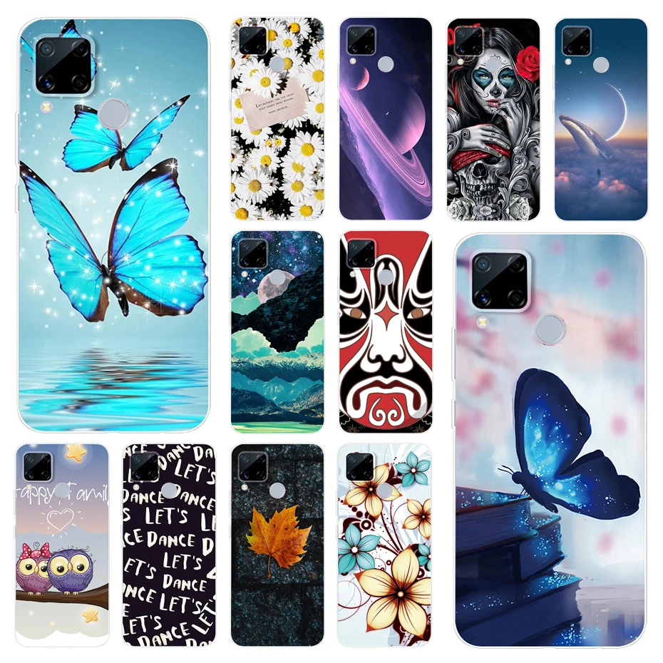 Funda de teléfono para Realme C25 C25S C12 C15 2021 Funda trasera de silicona suave mariposa azul para Realme C15 2020 RMX2180 C 15 C 25 Funda