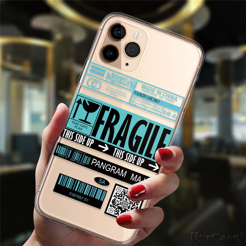 Para iPhone 13 12 11 14 Pro Max Mini XS XR 14Plus funda Retro código de barras etiqueta cara sonriente arte transparente funda de silicona suave