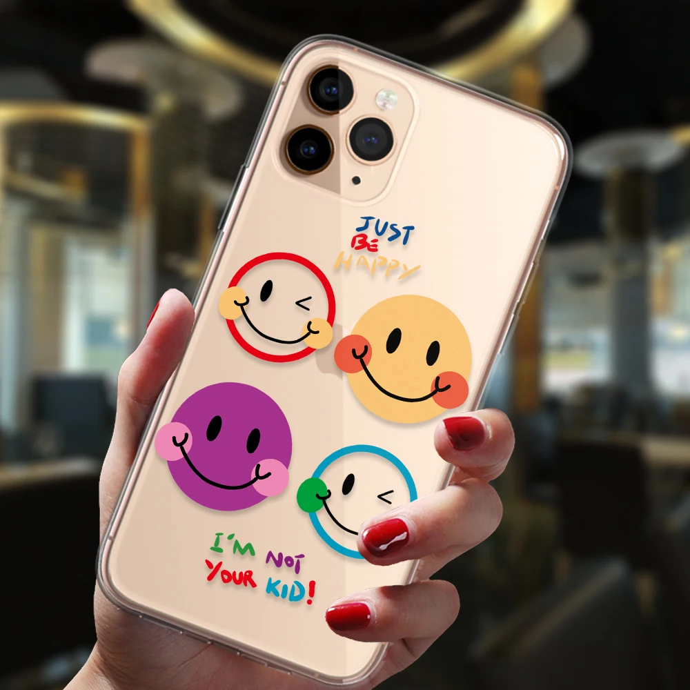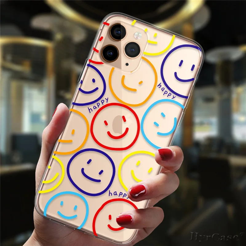Comprar Funda de silicona suave transparente para iPhone 13, 12, 11, 14 Pro Max, Mini, XS, XR, 14Plus, etiqueta de código de barras Retro, cara sonriente