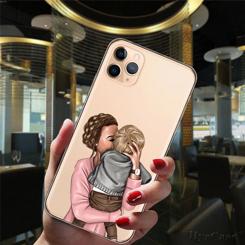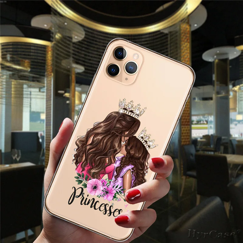Comprar Funda de silicona suave transparente para iPhone 13, 12, 11, 14 Pro Max, Mini, XS, XR, 14Plus, pelo marrón y negro