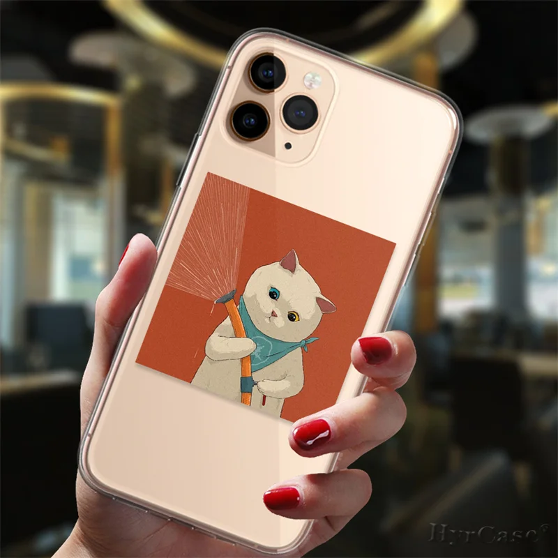 Comprar Funda de silicona suave transparente para iPhone 13, 12, 11, 14 Pro Max, Mini, 15 Plus, parejas divertidas populares, Gato lindo, moda