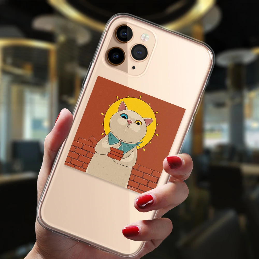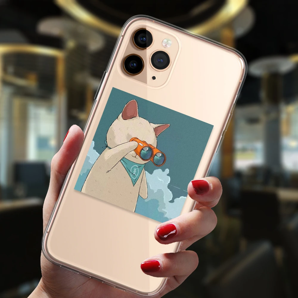 Comprar Funda de silicona suave transparente para iPhone 13, 12, 11, 14 Pro Max, Mini, 15 Plus, parejas divertidas populares, Gato lindo, moda