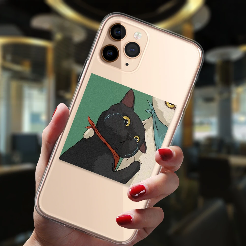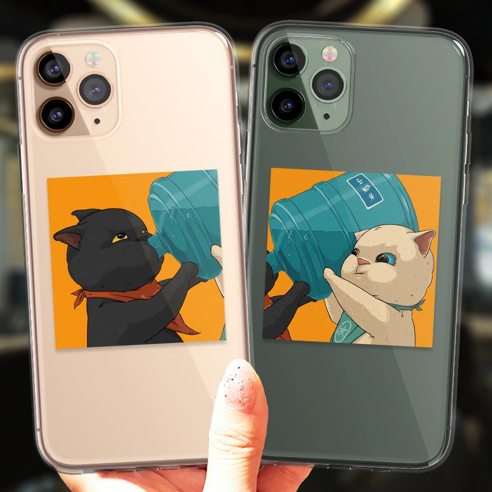 Para iPhone 13 12 11 14 Pro Max Mini 15 Plus funda Popular parejas divertidas lindo gato moda transparente funda de silicona suave
