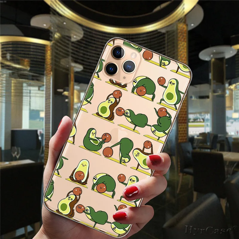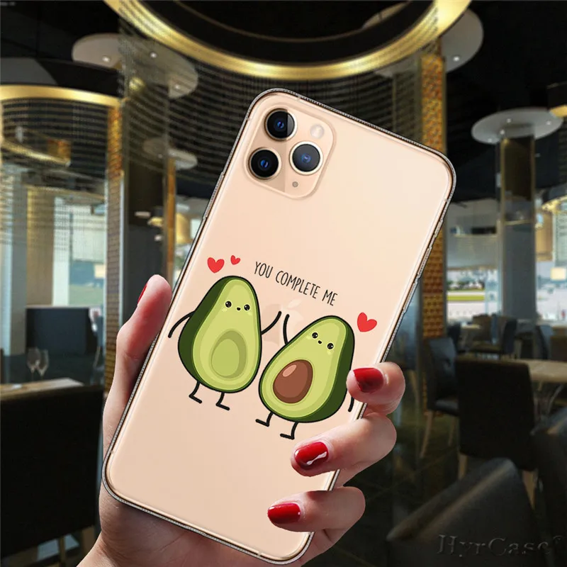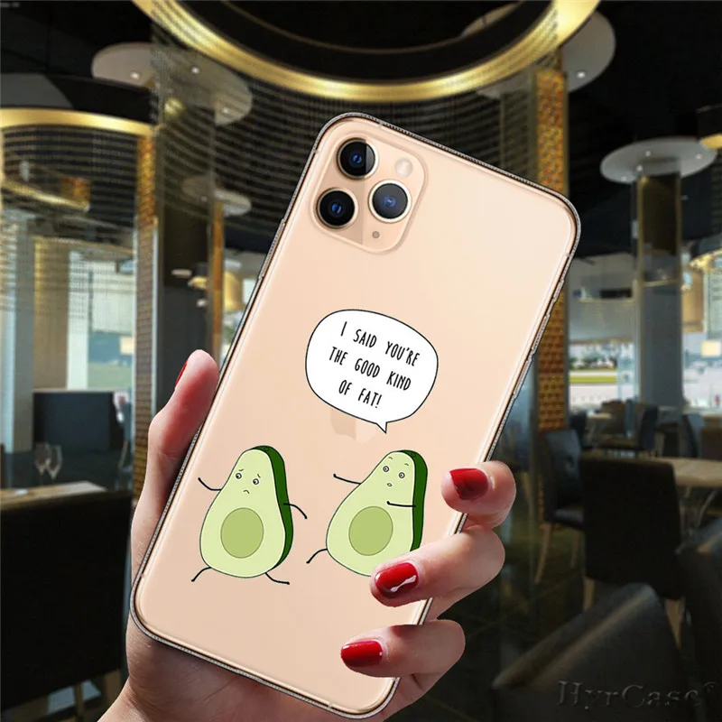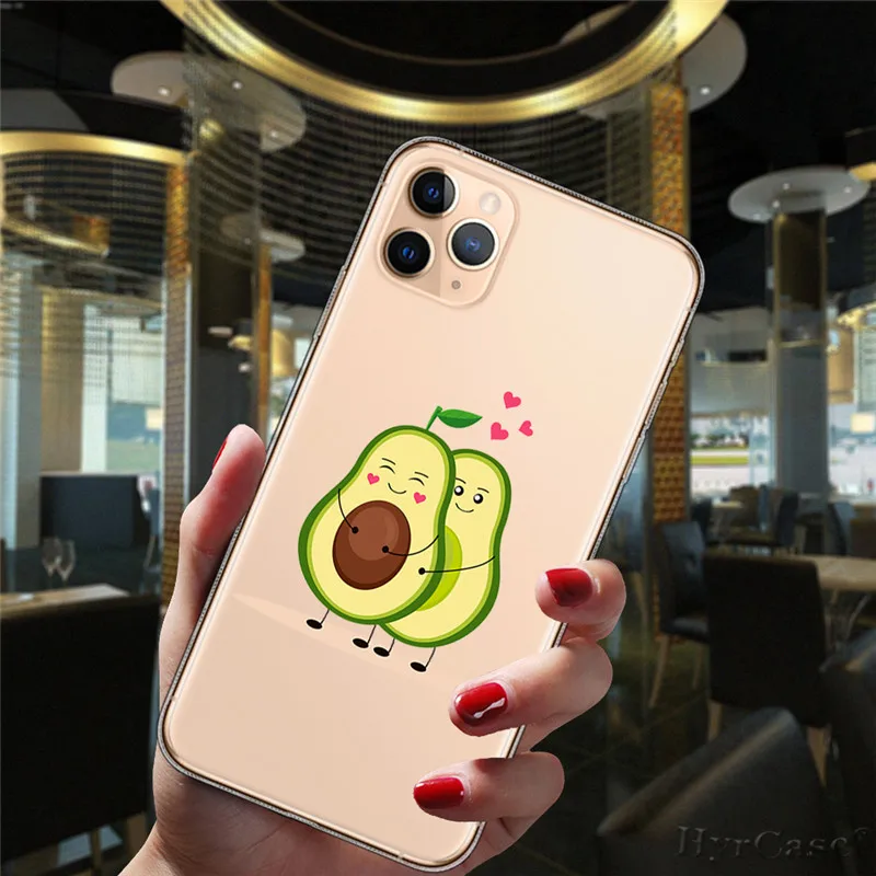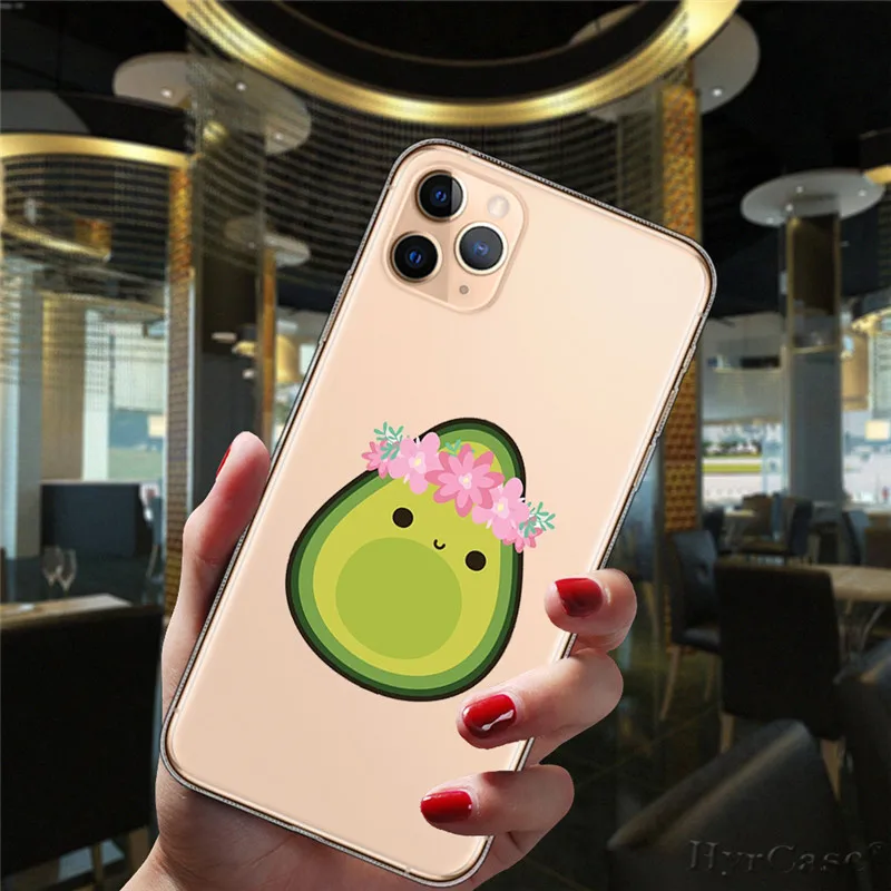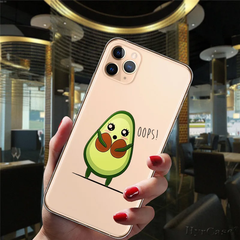 Comprar Funda de silicona suave transparente para iPhone 13, 12, 11, 14 Pro Max, Mini, XS, XR, 14Plus, dibujos animados, aguacate, moda Popular