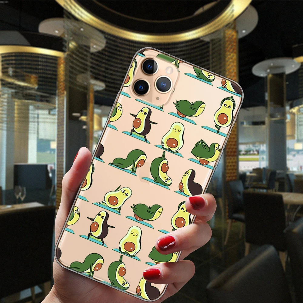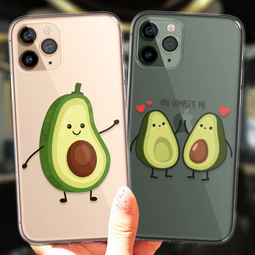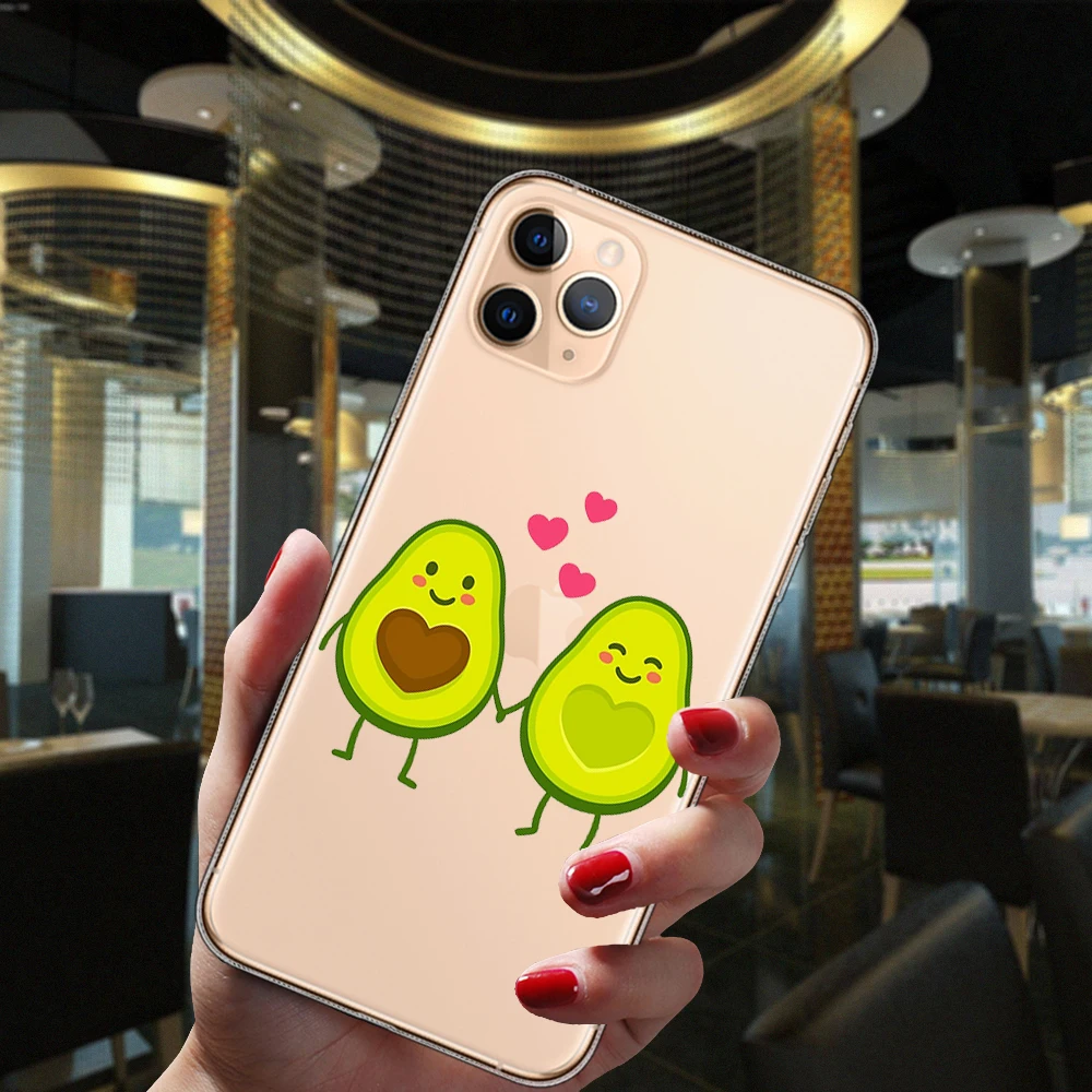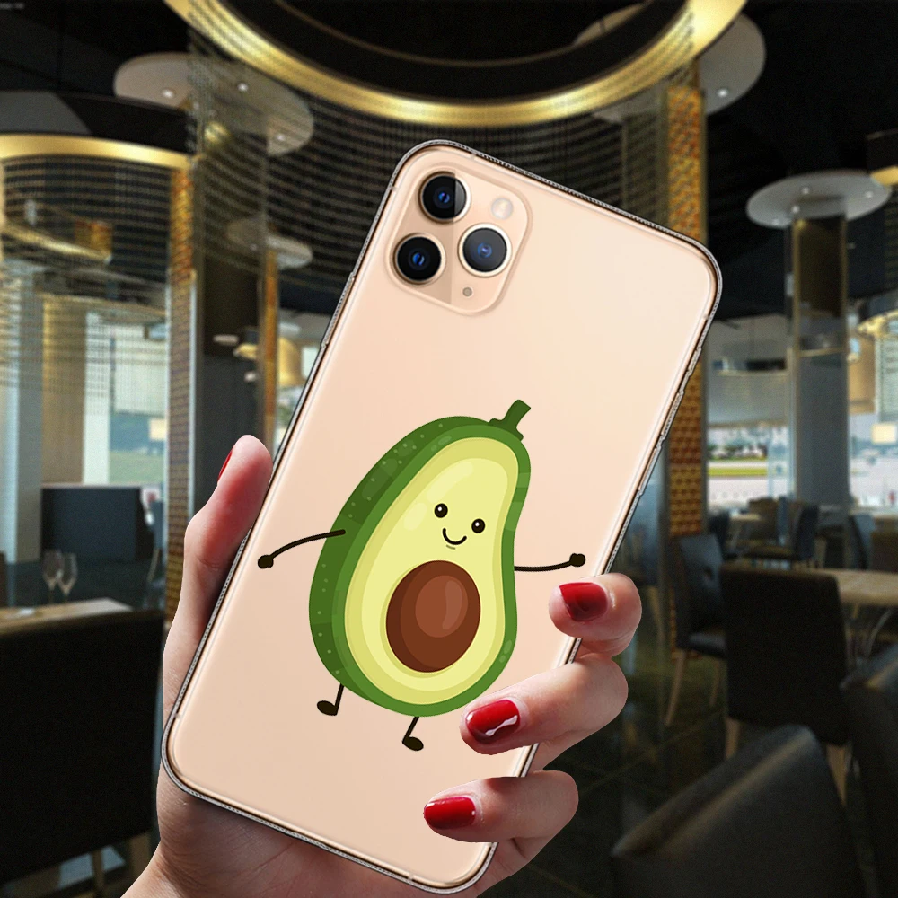 Comprar Funda de silicona suave transparente para iPhone 13, 12, 11, 14 Pro Max, Mini, XS, XR, 14Plus, dibujos animados, aguacate, moda Popular