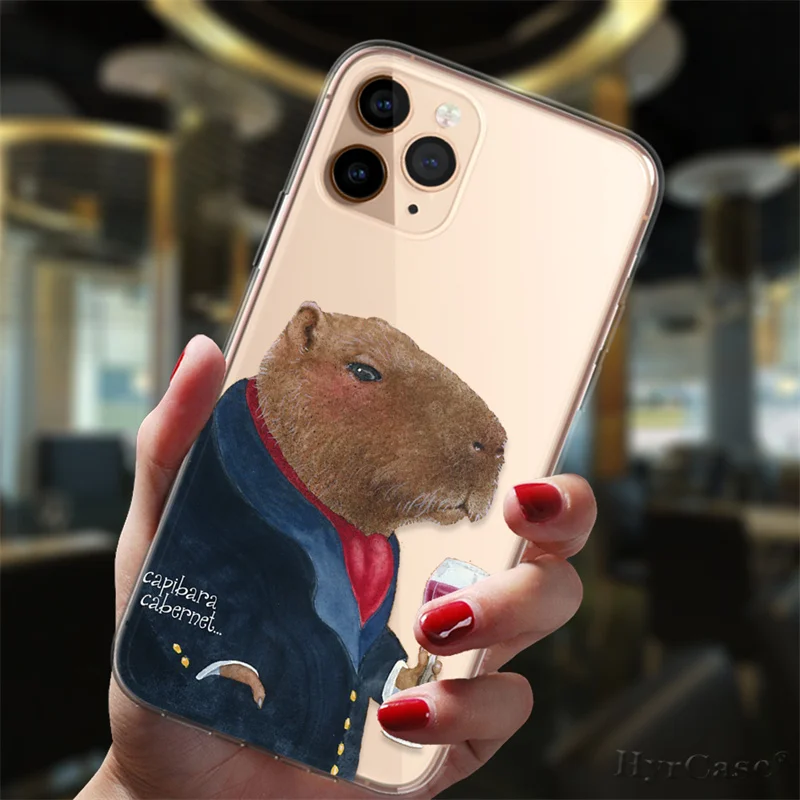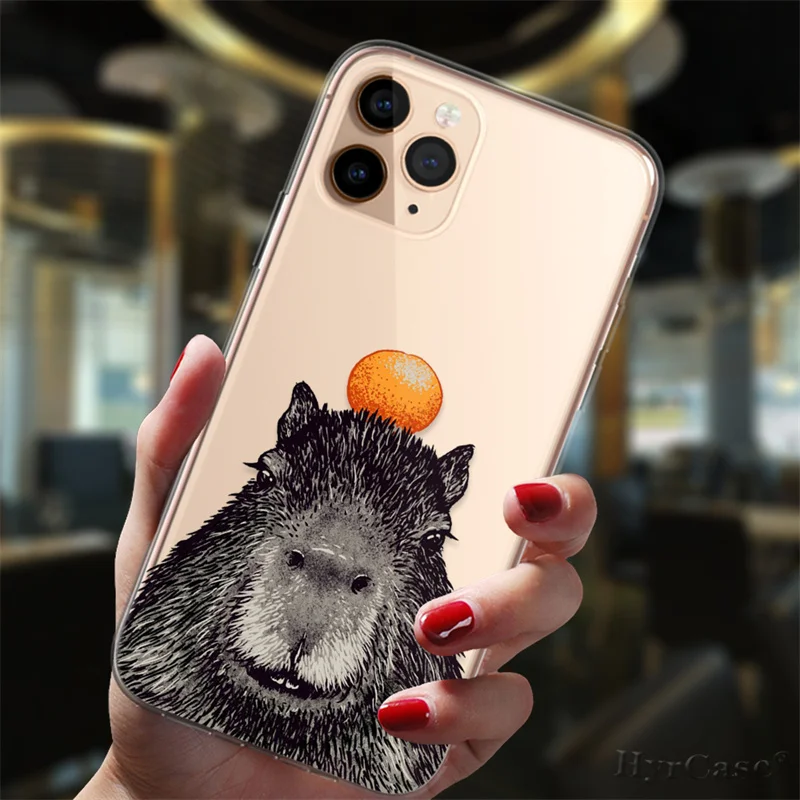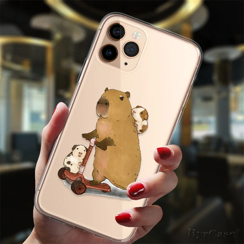 Comprar Funda de silicona suave transparente para iPhone 13, 12, 11, 14 Pro Max, Mini, 15 Plus, parejas populares, Capybara, Animal lindo, moda