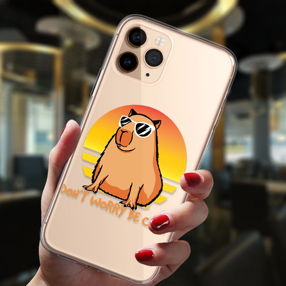 Comprar Funda de silicona suave transparente para iPhone 13, 12, 11, 14 Pro Max, Mini, 15 Plus, parejas populares, Capybara, Animal lindo, moda