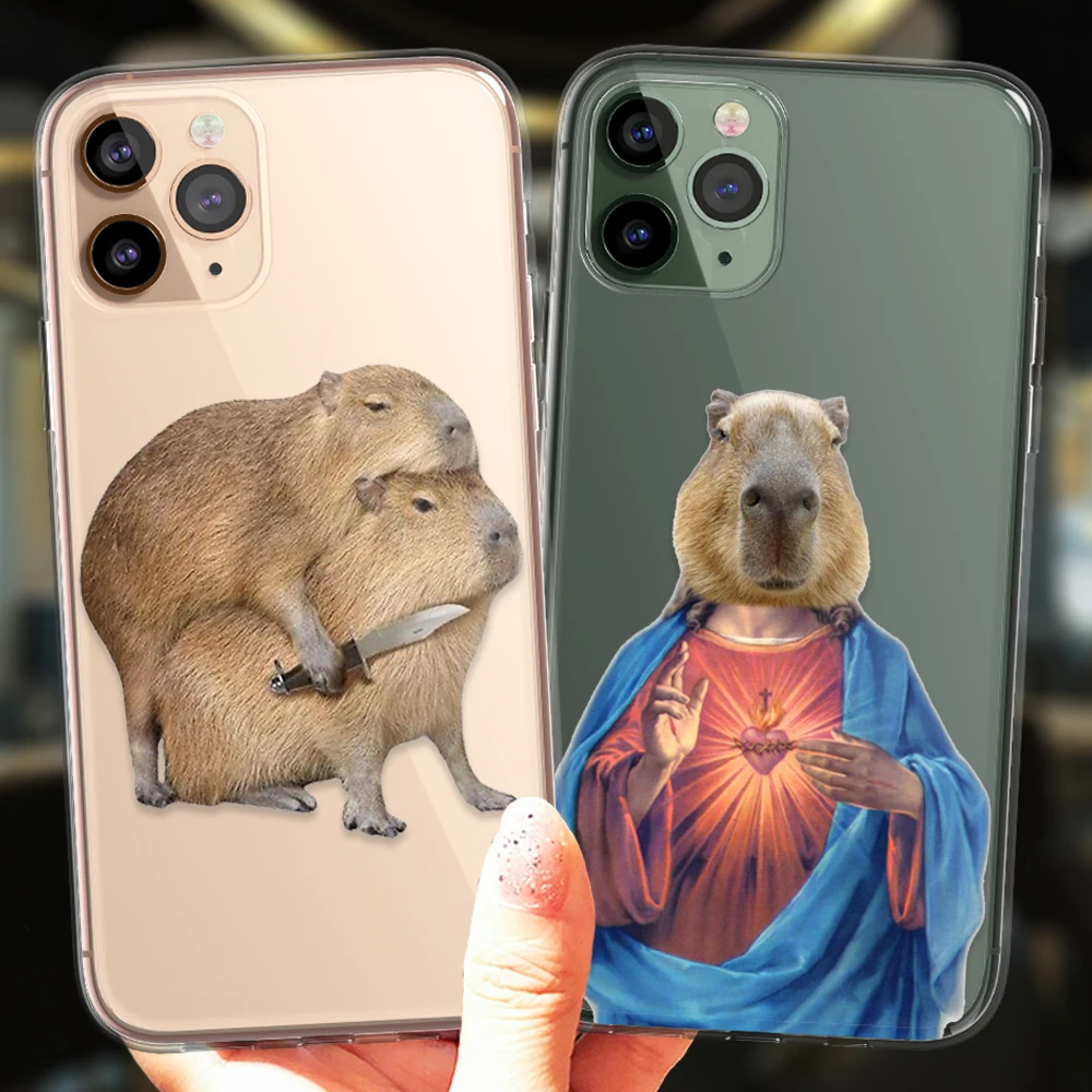 Para iPhone 13 12 11 14 Pro Max Mini 15 Plus funda Popular parejas Capybara lindo Animal moda transparente funda de silicona suave