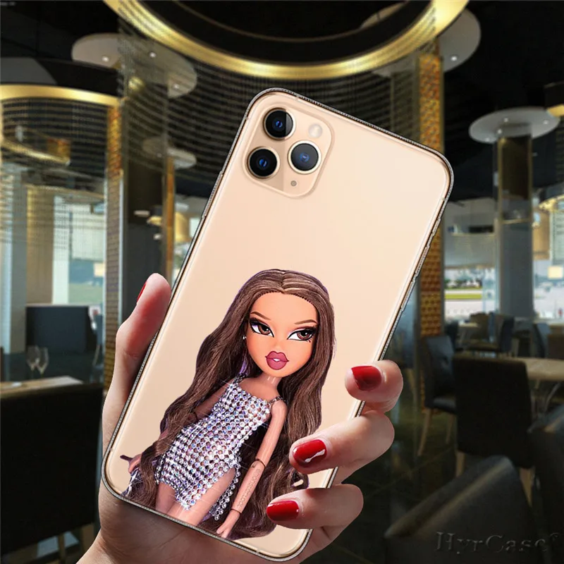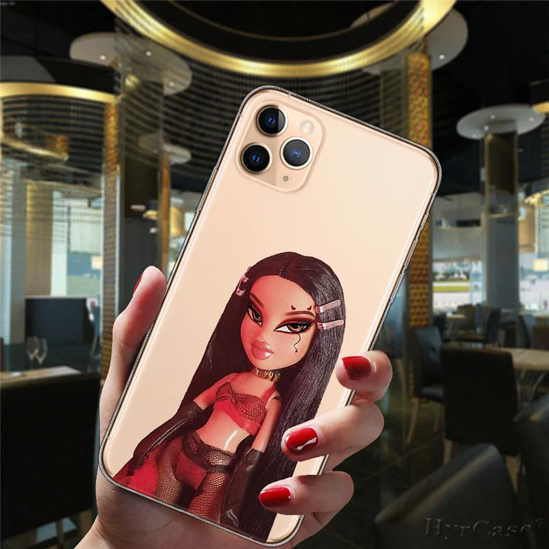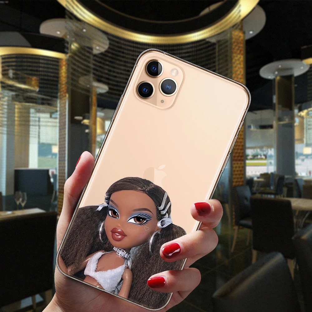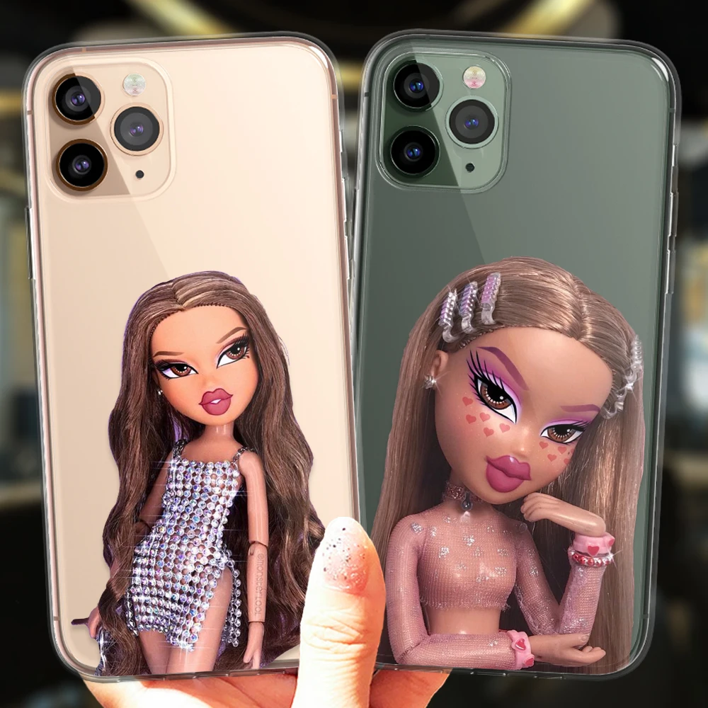 Para iPhone 13 12 11 14 Pro Max Mini 15 Plus 15ProMax funda Popular Linda muñeca Sexy Bratz moda transparente funda de silicona suave
